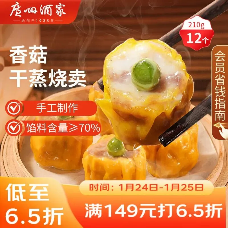 广州酒家 香菇干蒸烧麦210g 12个 早餐半成品 广式早茶点心 烧卖年货送礼...