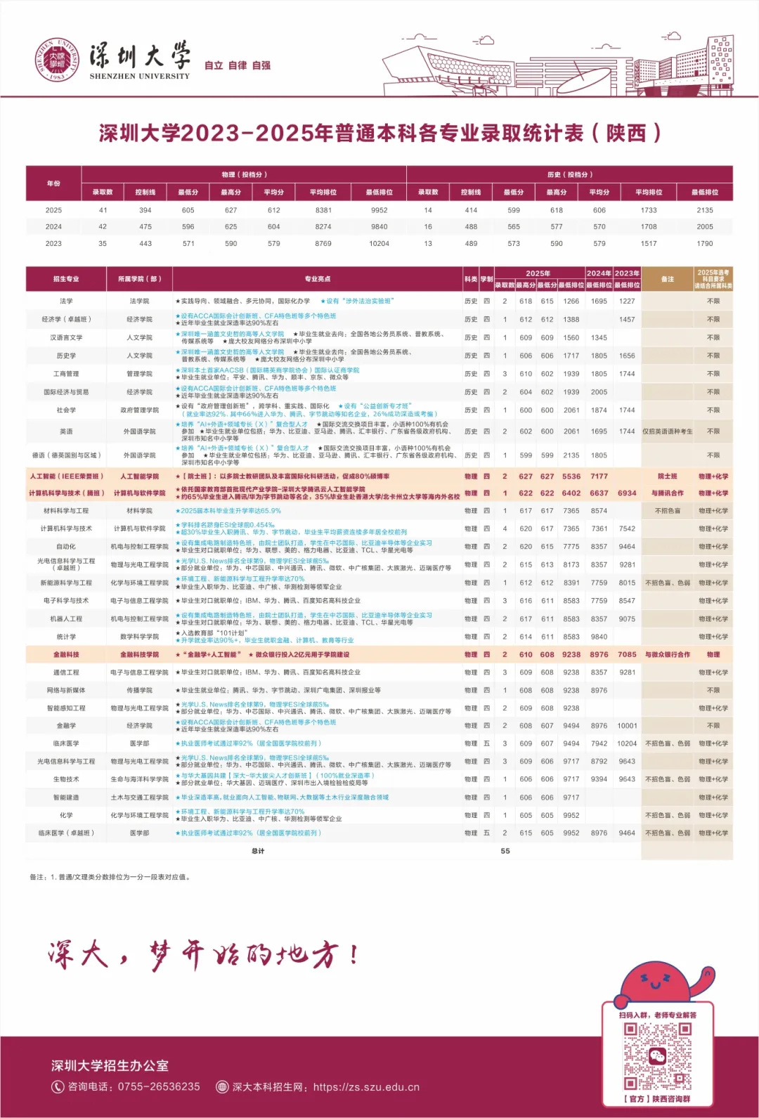 >深圳大学23--25年普通本科类在陕分专业招录数据发布!