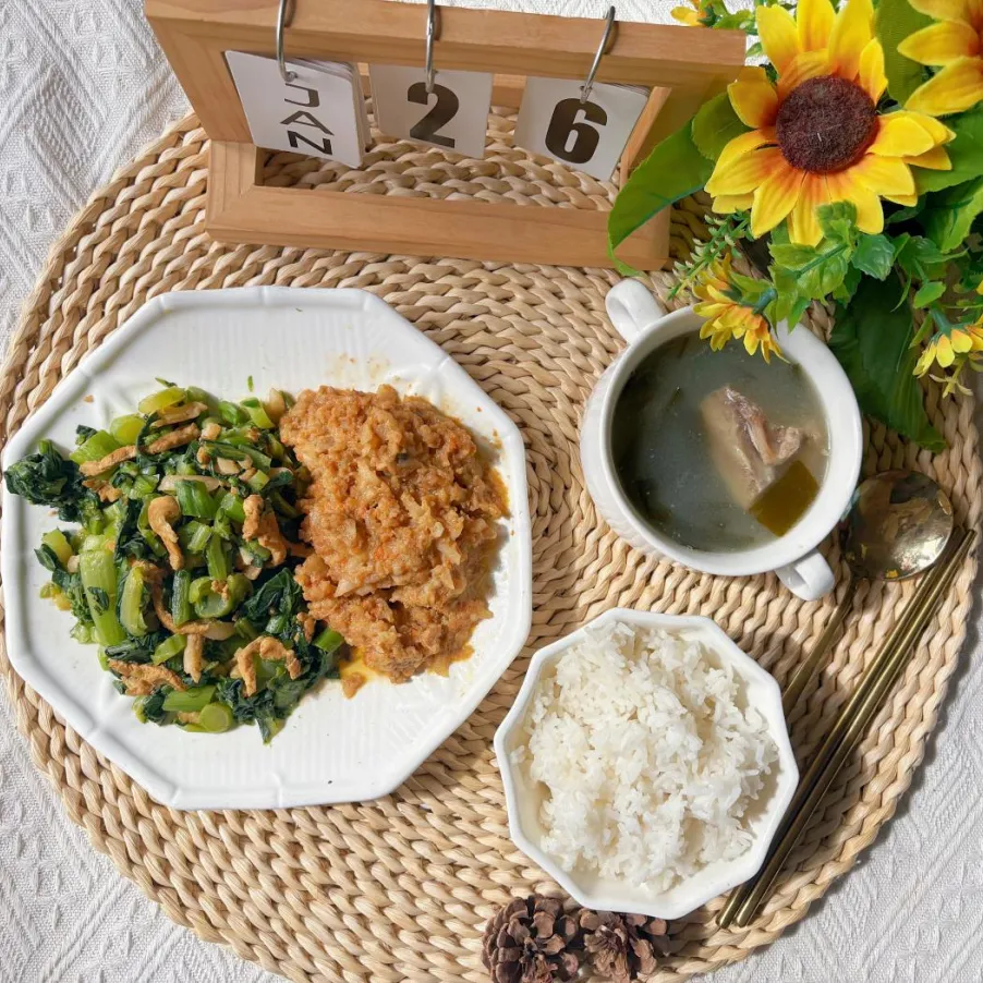中餐:白米饭、瑶柱瘦肉蒸蛋