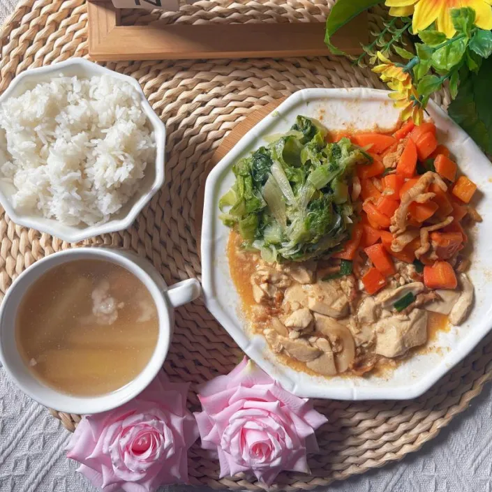 胡萝卜炒肉、盐油生菜