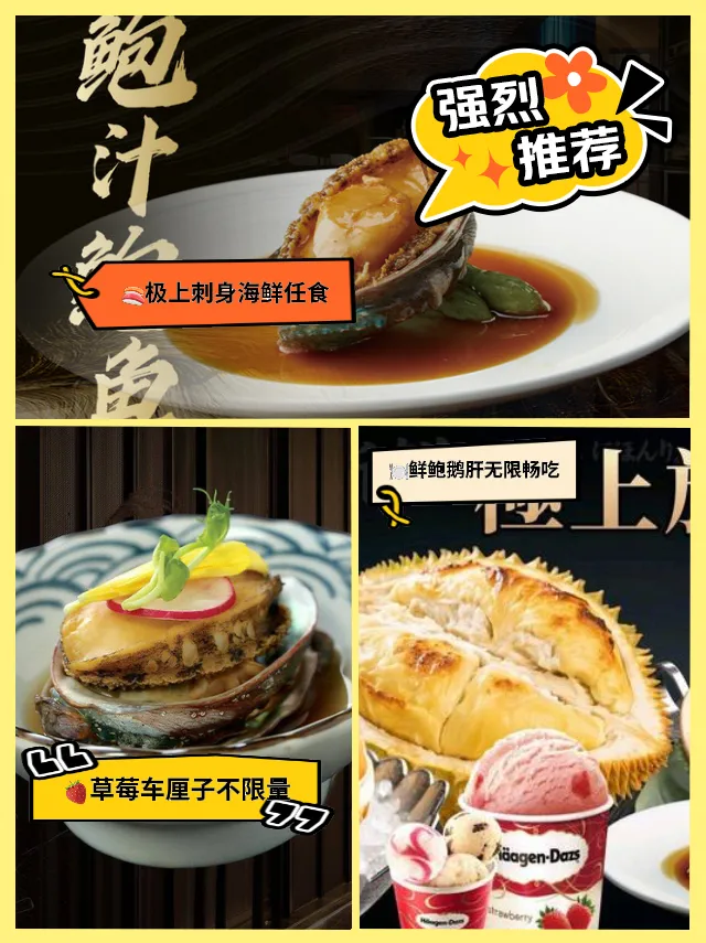 💰鲜鲍鹅肝任食放题253元,5.5折