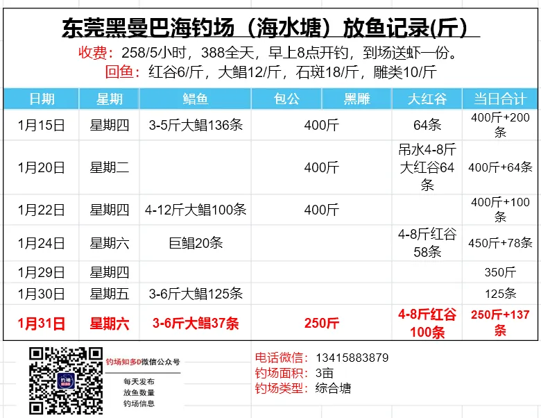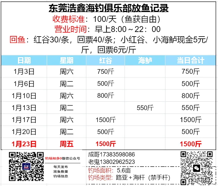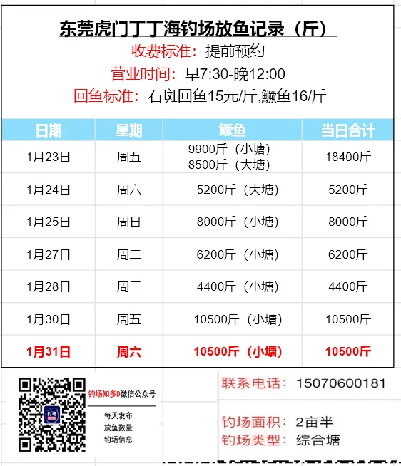 本文收录东莞地区比较知名和靠谱的钓场放鱼数据,