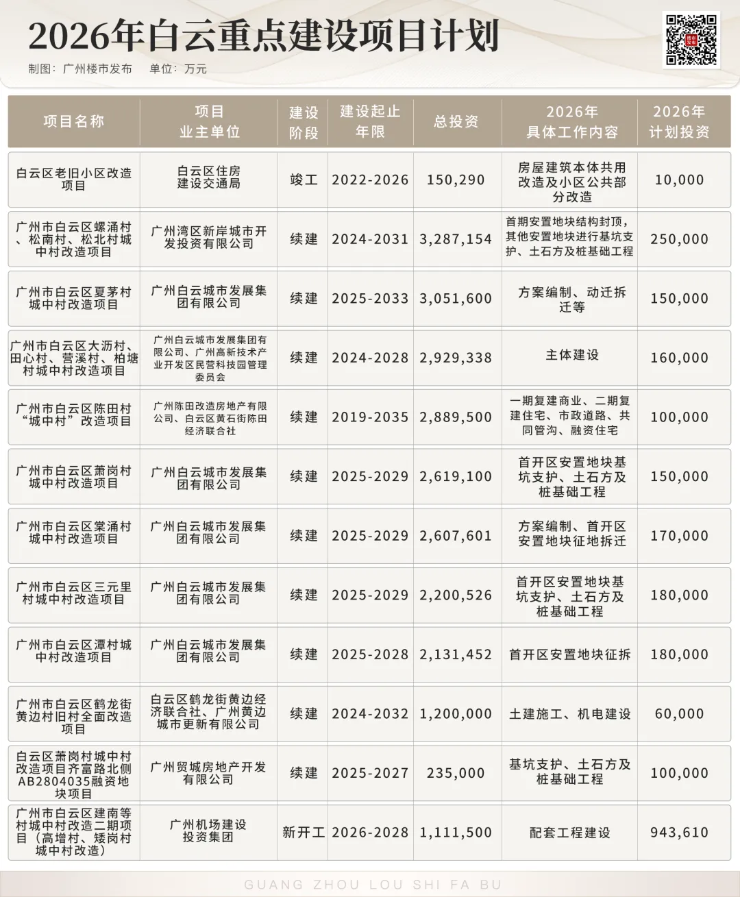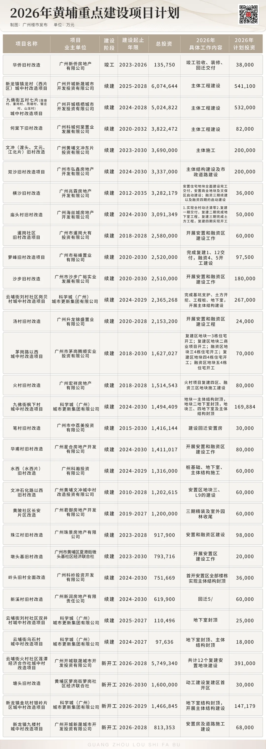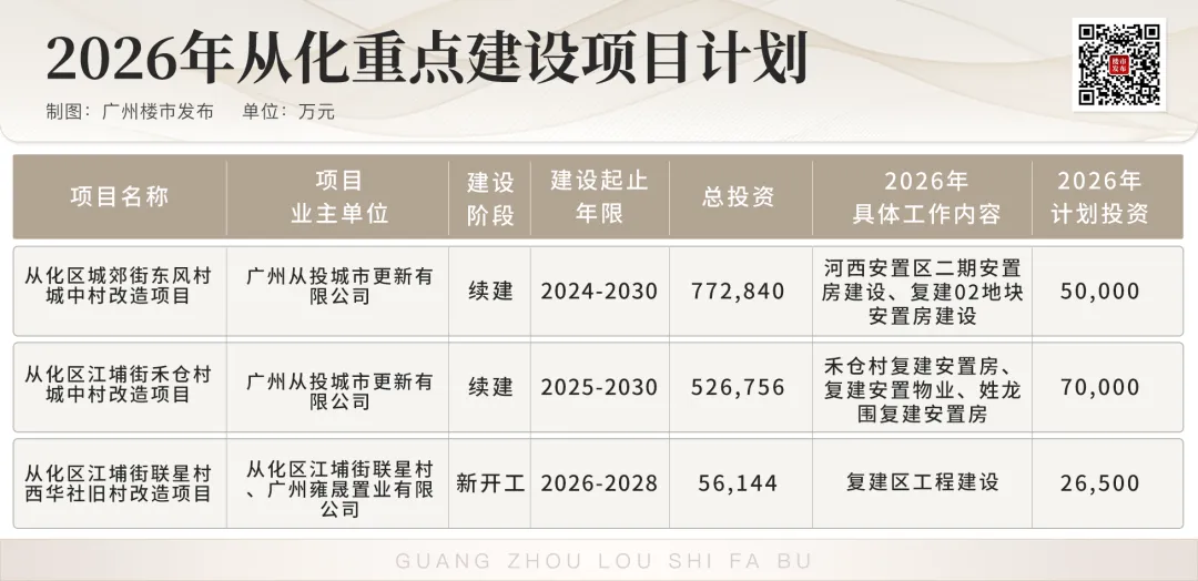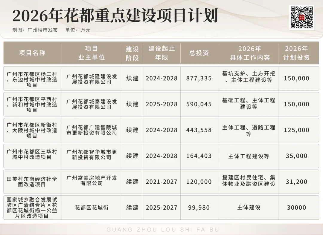 比如投资额达2319亿元的冼村改造,2026年主要还是推进主体工程建设,对珠江新城的重要性不言而喻。