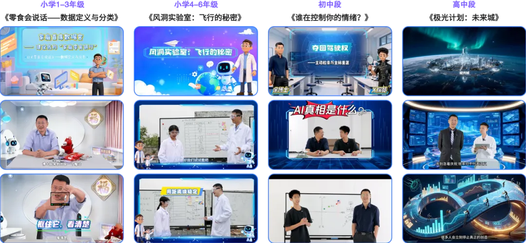 由知名科学家余旸教授领衔设计,推出适合不同学段的四套游戏化、生活化AI微课程(每套5节课),帮助学生理解人工智能的基本逻辑与应用边界。