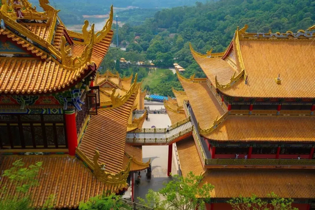 大岭山观音寺,被称为藏在深山中的“小故宫”,今瓦红墙、层叠殿宇宙、云端长廊,步入其中仿佛穿越到紫禁之巅。