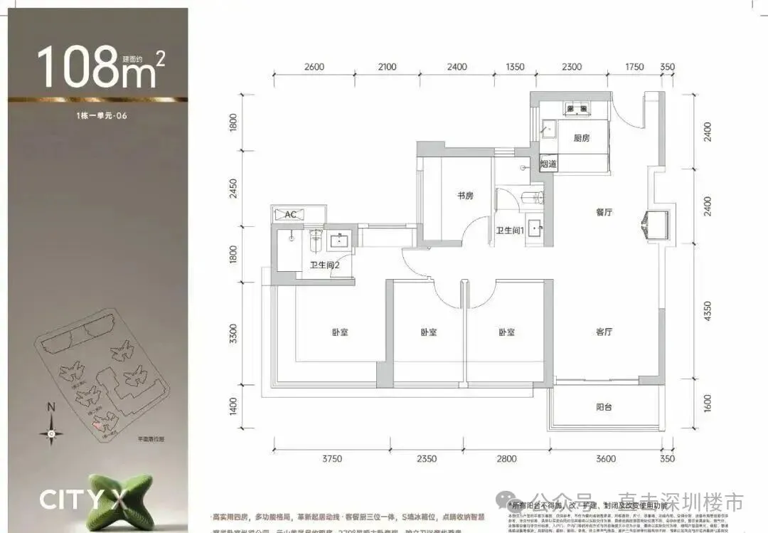 本次首推的08地块,备案名:未来平方云山府,由鸿荣源集团打造,共分3期建设,总占地面积约2.73万㎡,总建筑面积约37.41万㎡,计容建筑面积约27.51万㎡,容积率9.23,绿化率32.01%,共由5栋58-59层高住宅组成,其中1栋1单元住宅59F,1栋2/3单元住宅58F,3栋1单元/2单元住宅58F,4栋1/2单元写字楼35F,2栋是1所18班幼儿园,配建有公交首末站。