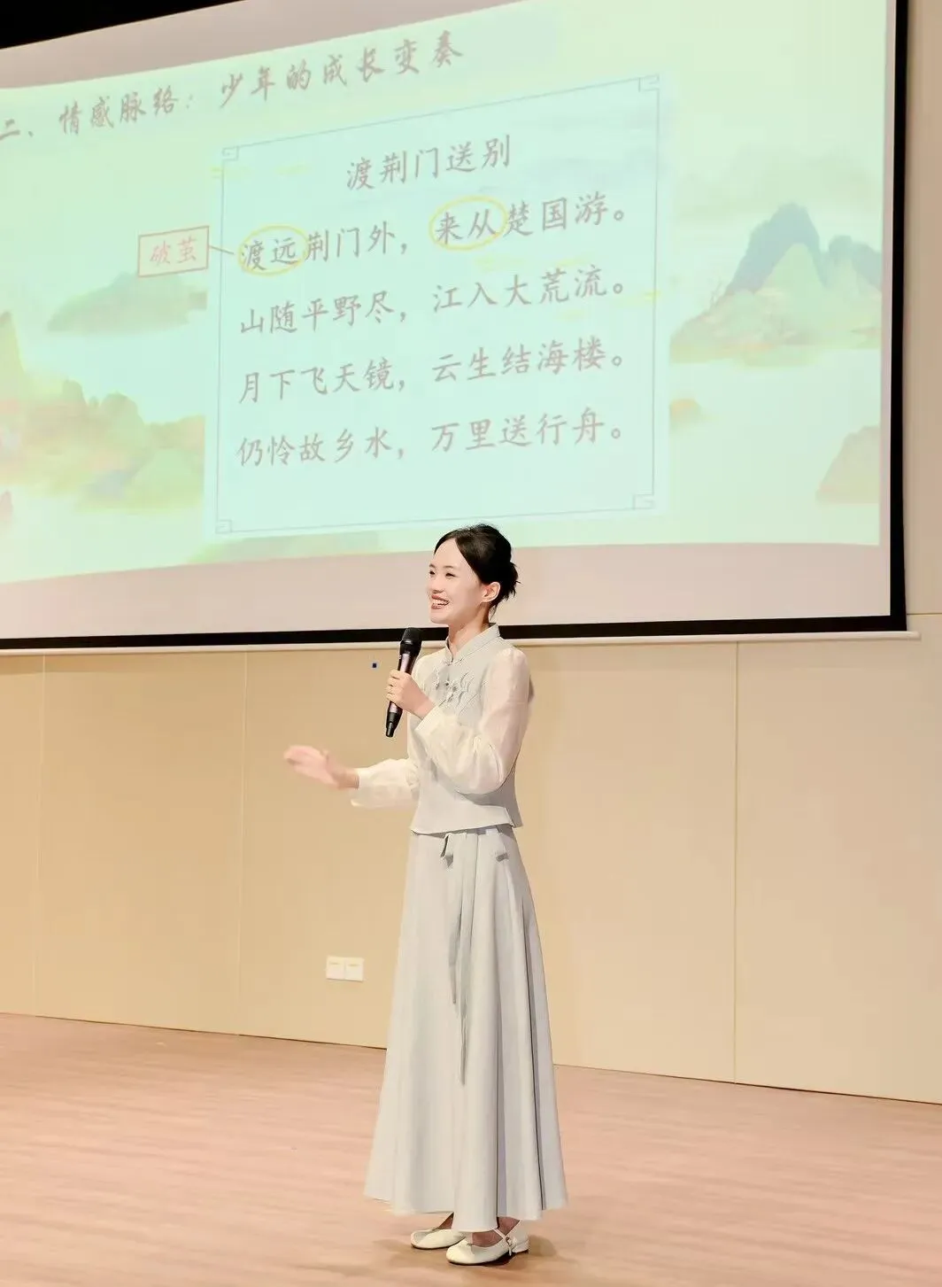在此次覆盖全国的诗词讲解赛事中,王璐瑶老师以诗为舟,一路前行,展现出卓越的风采。从区赛特等奖、广州市一等奖、广东省二等奖到国赛二等奖,王璐瑶老师以《渡荆门送别》《太常引·建康中秋夜为吕叔潜赋》等经典篇目为舟,循诗入境,以声传情,展现了广州中学语文教师扎实的专业功底与文化自信。