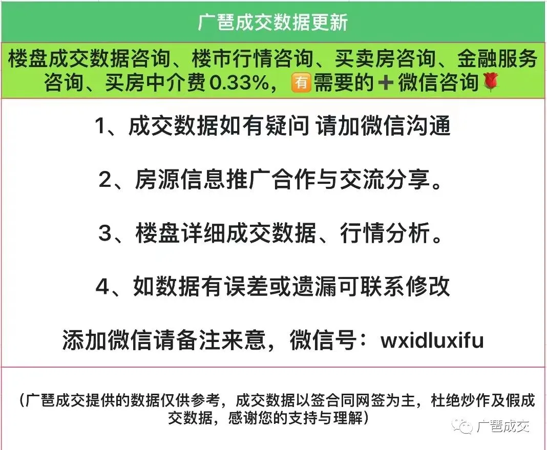 成交以真实准确不炒作 为第一前提,为广大业主、客户及经纪人提供最新成交 信息,因能力有限如有漏差及差异请私下联系更正