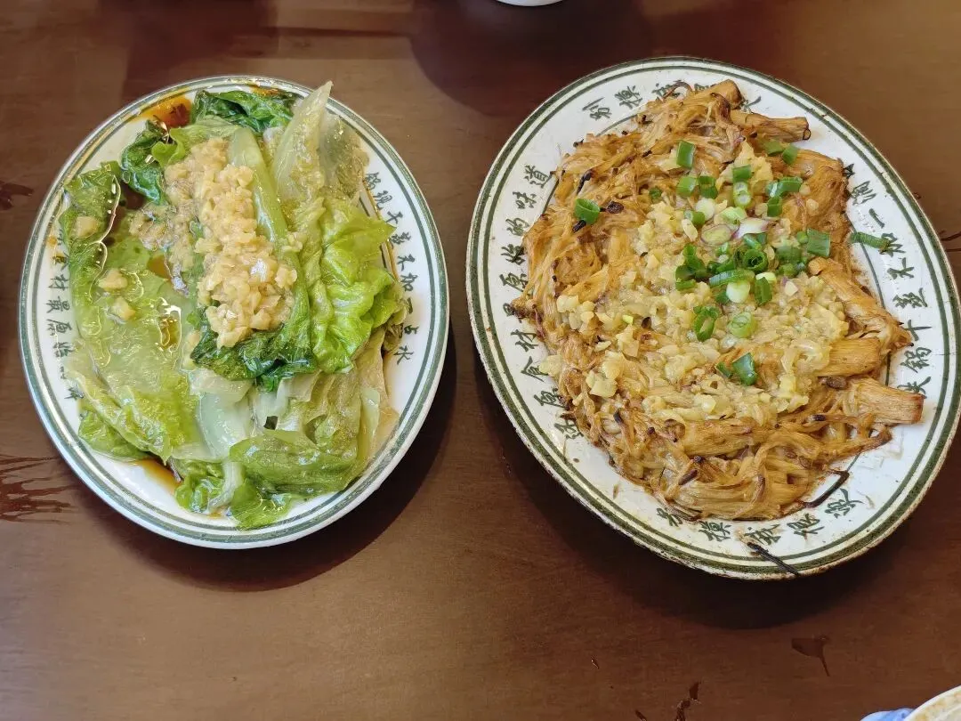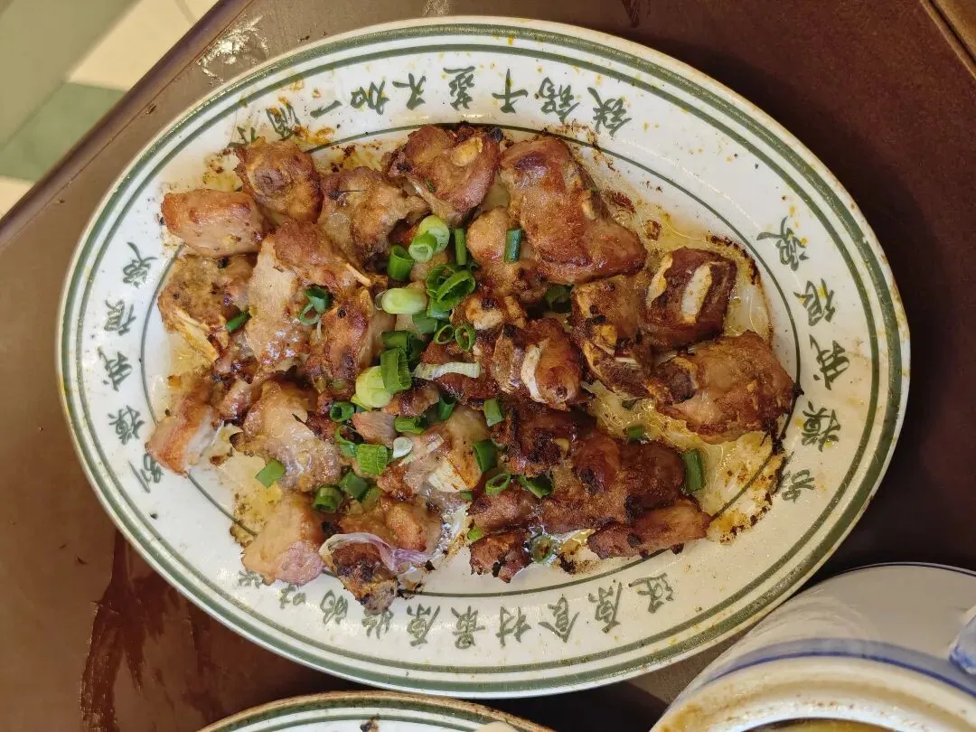 关于“干蒸”这种做法,我大概是在几个月之前刷小红书的时候了解到的。之前在看很多西餐教程时,总是思考中国是否也有类似烤制的家常菜肴。后来发现果然大家的智慧总是无穷无尽的,干蒸便是用铁锅制造类似烤箱环境的一种做法。将新鲜的食材处理干净之后分切成大小合适的尺寸,以豉油、糖、盐进行简单的调味,连盘子一起放入炙热的无水铁锅中,迅速干蒸成为充满美拉德味道的成品。个人看来,干蒸排骨、走地鸡、肉饼、金针菇最为合适,这种方式能够很大程度上释放食材的本味。虾次之,因为虾壳阻挡入味,吃起来与白灼虾并无太多区别。水分较多的青菜便有些吃不懂了,本来设计出来锁住食材汁水的烹饪方式,在这里无法发挥太多作用。若不是因为干蒸太废锅,不然真的很想自己尝试一下。或许用烤箱也能模拟一二吧。
