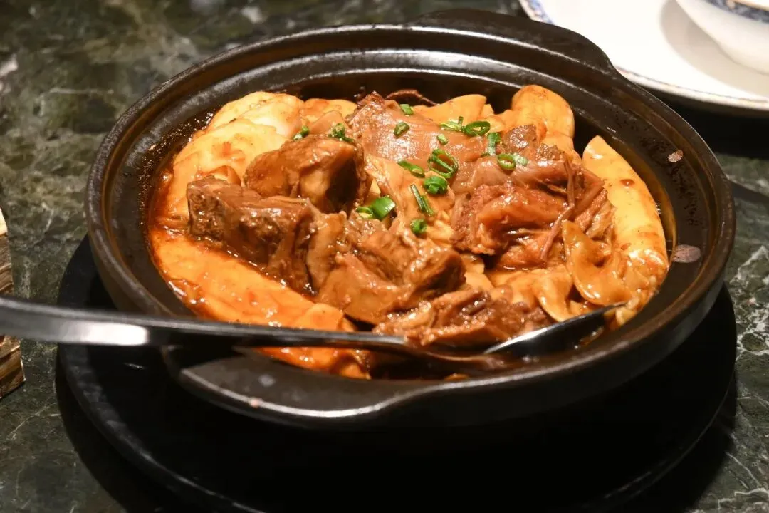 似乎开在城市里的早茶,有大部分都属于预制菜,区别只是供应商好点或差点。真的要找现做现蒸的茶点,恐怕需要费一番功夫了。也许正因为此,陶陶居的早茶居然还不算差。啫啫牛腩肠粉走的是浓油赤酱的风格,应该算是广式里面比较重口味的一道菜了。牛肉软烂得刚刚好,肠粉下的料汁十分合我胃口。红米肠里面的虾炸得十分清爽,外面的米皮又薄又弹,比我之前吃过的其他预制好很多。烧麦、叉烧酥和金钱肚也还算不错。