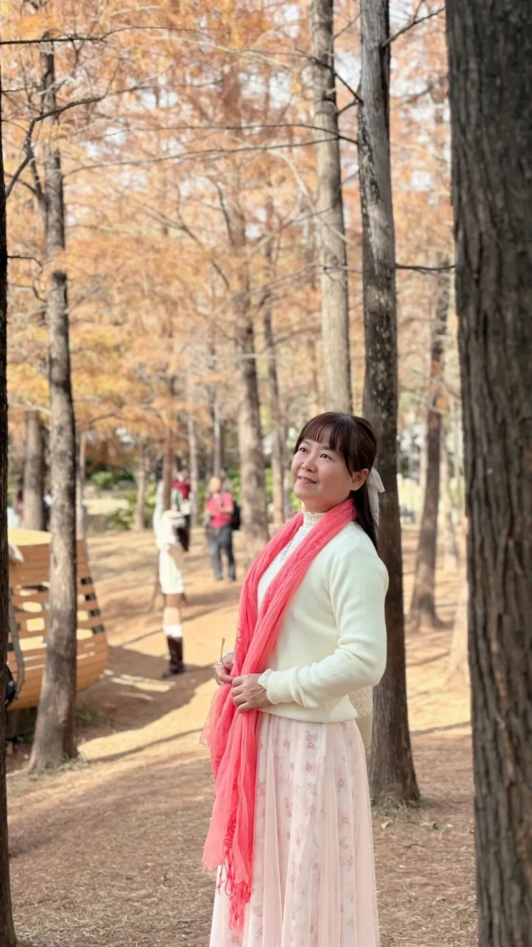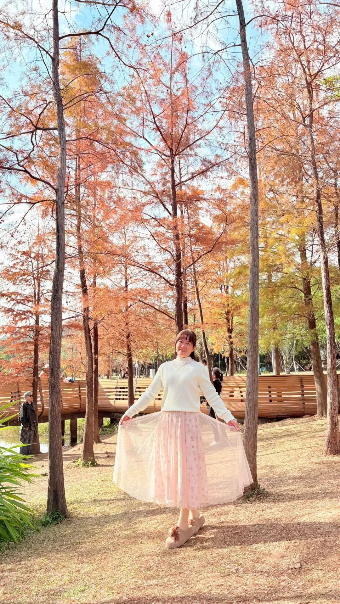 跟一位玩耍的小弟弟借了个大气球,拍了段小视频,然后我们随意走走停停,晒晒太阳,聊聊天。来到莲心湖,这边的落羽杉没有去年的美,不过拍照打卡的人还是挺多的。入口处有许多的旅游博主在帮人拍照(收费的哦),拍得真好看。人物在虚虚实实的画面里或浅笑或沉思或盼首或回眸······衬得落羽杉的枝叶富有独具一格的美。
