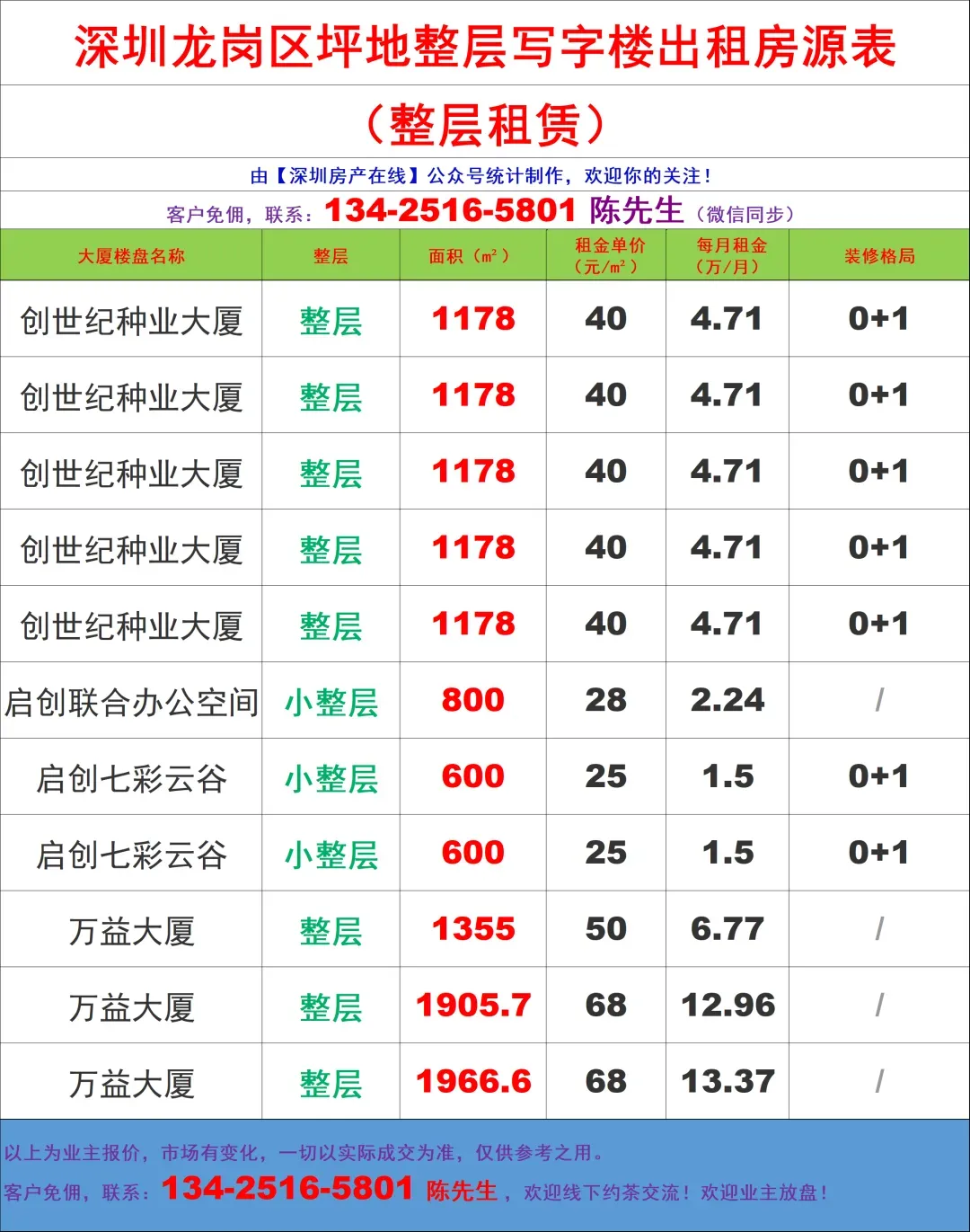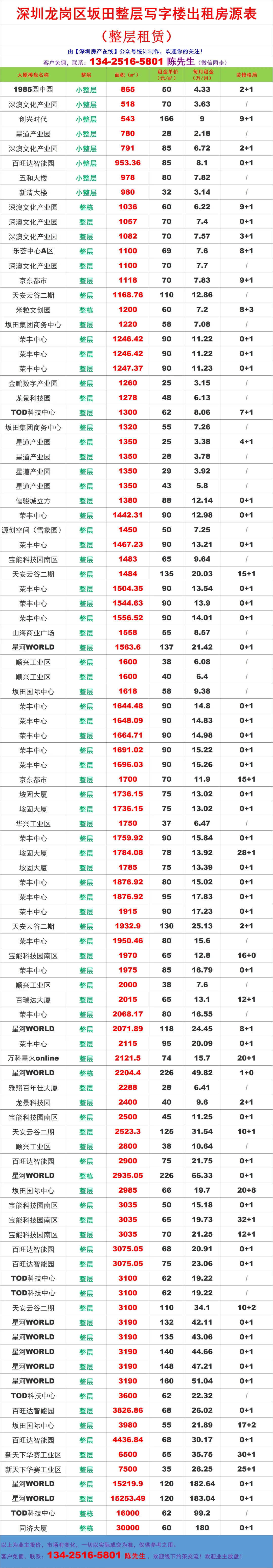 【深圳房产在线】陈先生:134-2516-5801 (微信同步)致力于提供全市写字楼招租/企业选址/代理招商/资产托管,全链条商务服务!