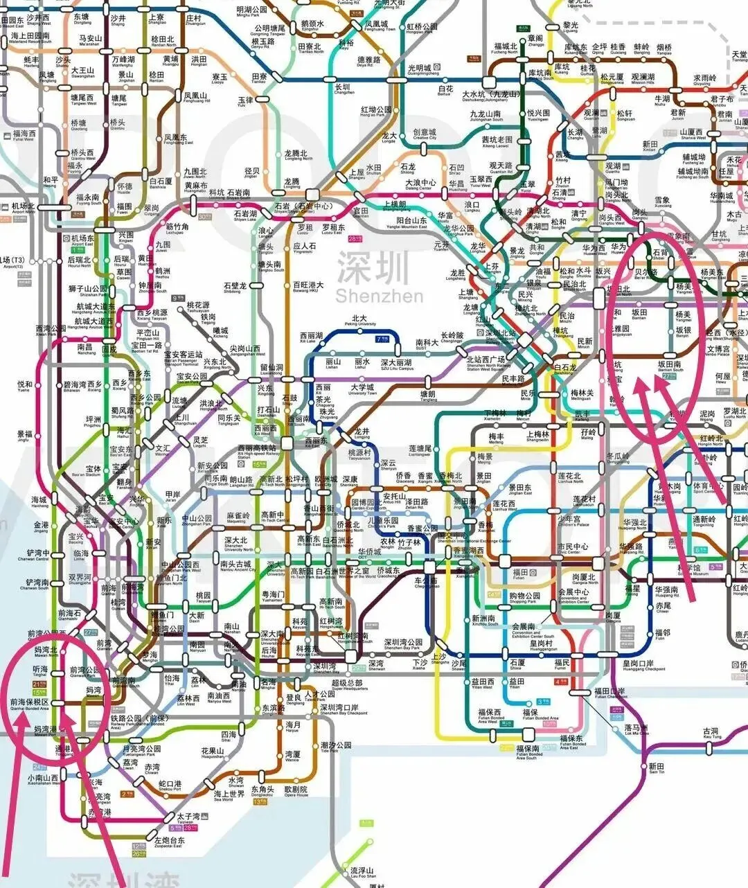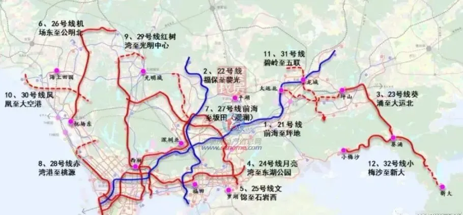 ▲深圳地铁修编调整线示意图(站名以实际运营为准)