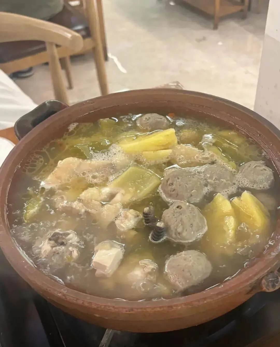前阵子朋友带我去龙洞吃了一家店 , 叫娥姨十里香牛杂煲 , 点了一个苦瓜菠萝鸡 , 当时真的惊艳到我了。