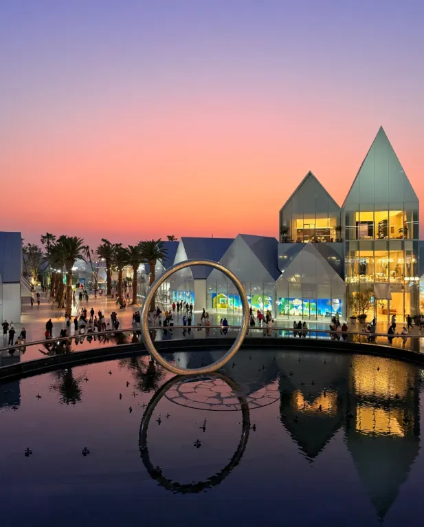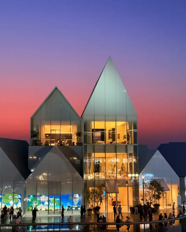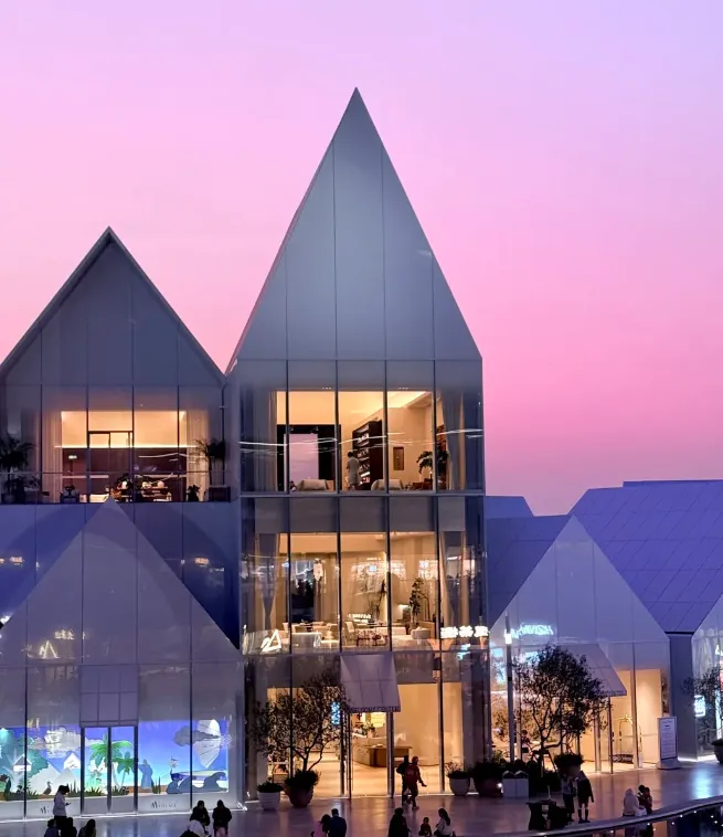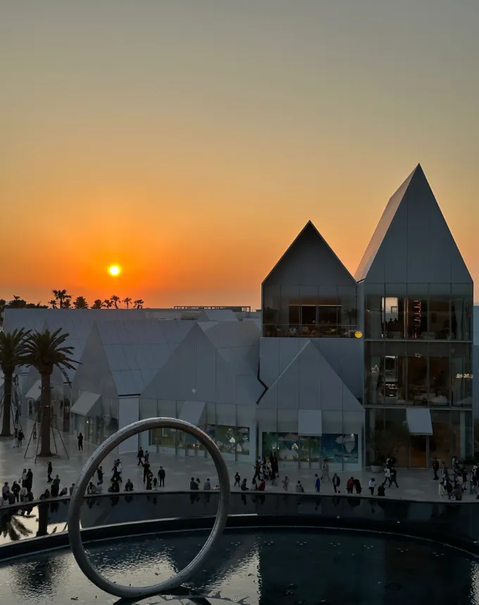 最让我惊艳的是日落时分,整个天空变成粉紫色,映在海面上,坐在海边的台阶上,吹着微风,那一刻真的忘记自己还在东莞。商场设计得很用心,不是简单的复制,而是真的营造出了度假氛围。