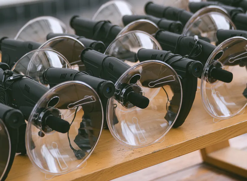 别怼着一个望远镜排队用