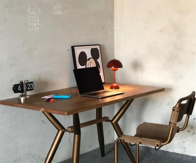 有些人觉得毛坯房没办法营造工作氛围。其实只要用对配件,一样可以打造小清新的网红工作区。看小哥直接把书桌移到卧室里,铁艺桌架+重木桌面,配个有腔调的小台灯,一台笔记本一放,**瞬间变身温馨又高级的“网红打卡位”!**用他的话说——“省钱还不乱,笔记本一合,工位就收拾清爽了,性价比嘎嘎高。”