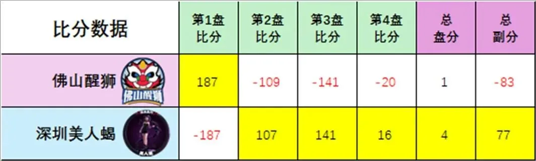 第1盘:佛山醒狮 187比-187 深圳美人蝎,佛山醒狮胜!