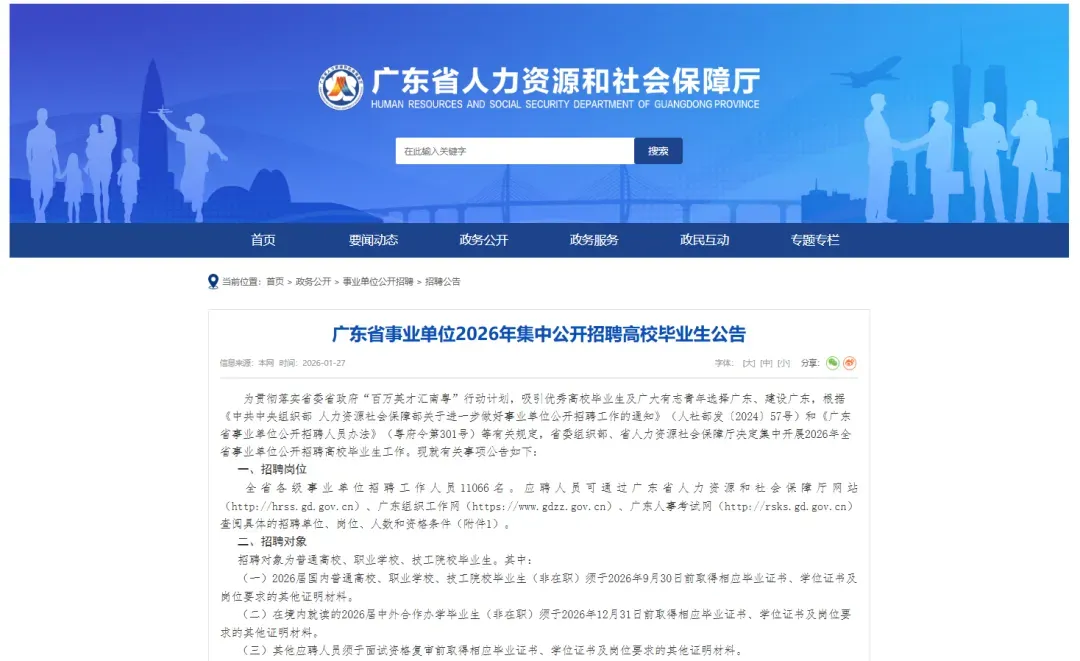 本次招聘实行网络报名。应聘人员请于2026年2月2日9:00至2月6日16:00登录“广东省事业单位公开招聘信息管理系统(考生报名)”