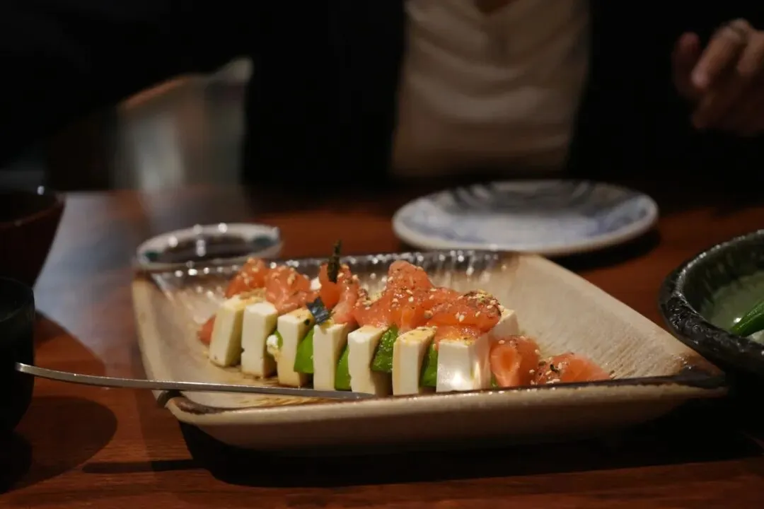 刚端上来的时候我觉得有点猎奇,因为没见过日本豆腐搭配三文鱼和牛油果,吓哭了。但事实证明这些东西并不影响主角的发挥。口感正确的豆腐+味道正确的酱油,美味哉。