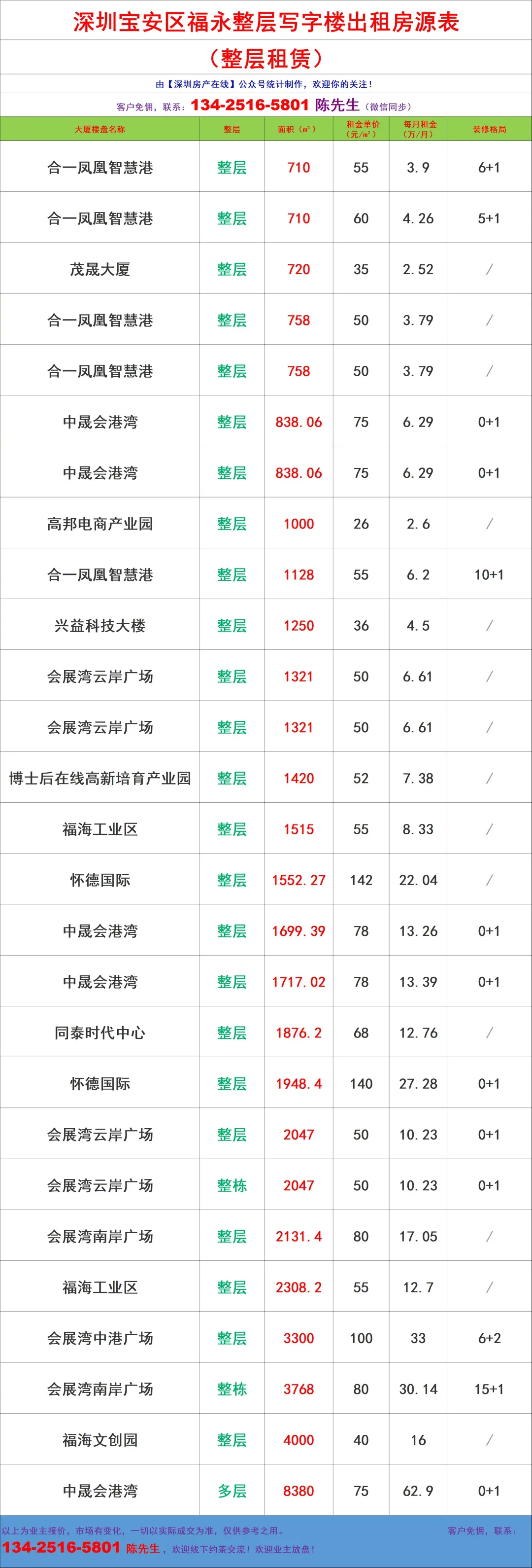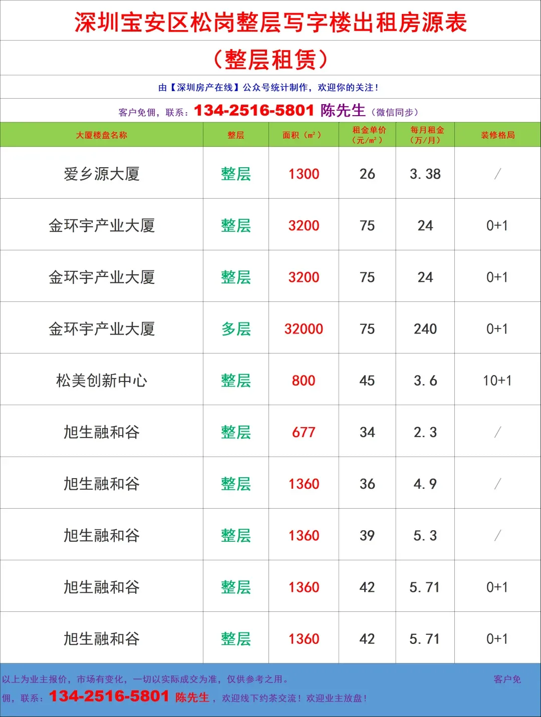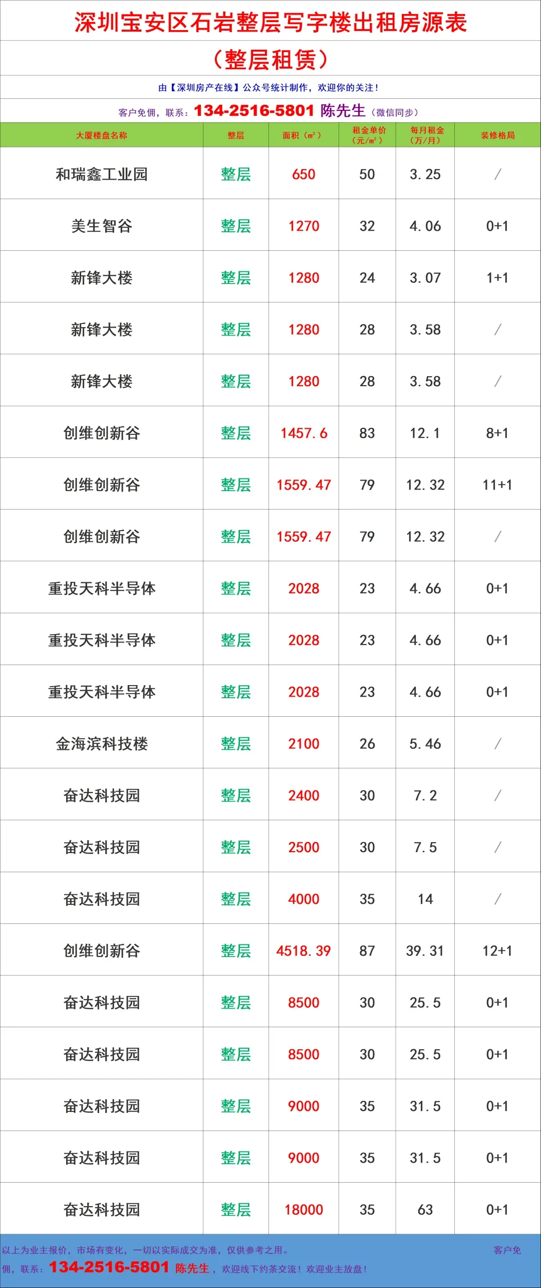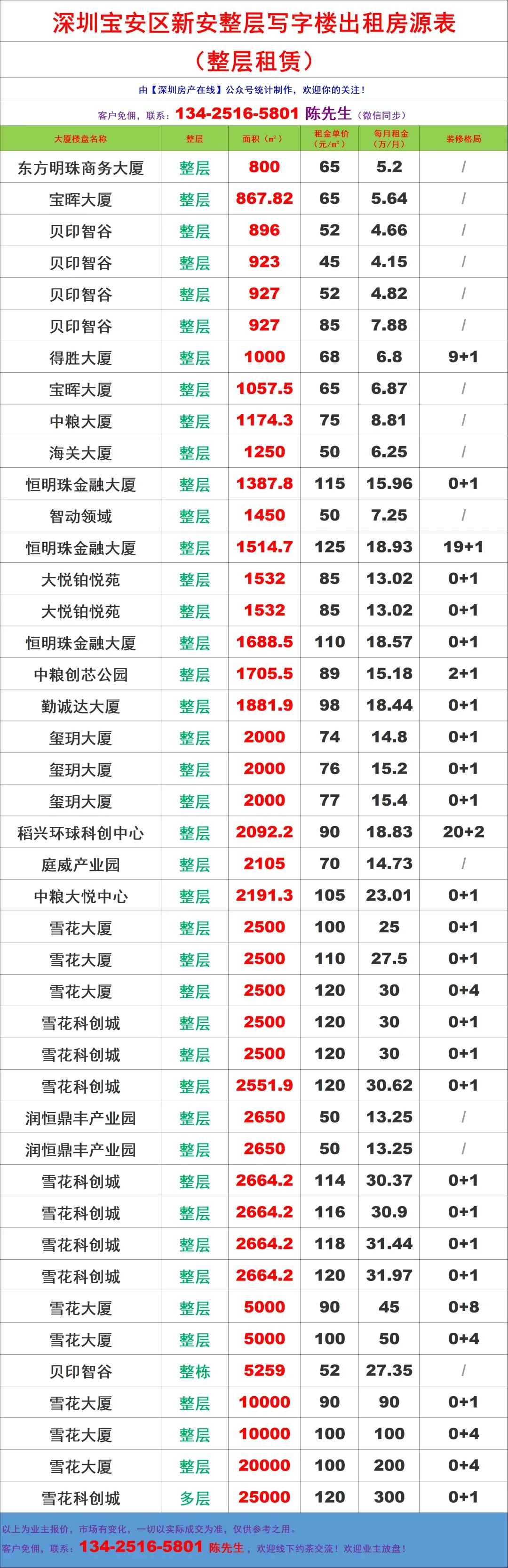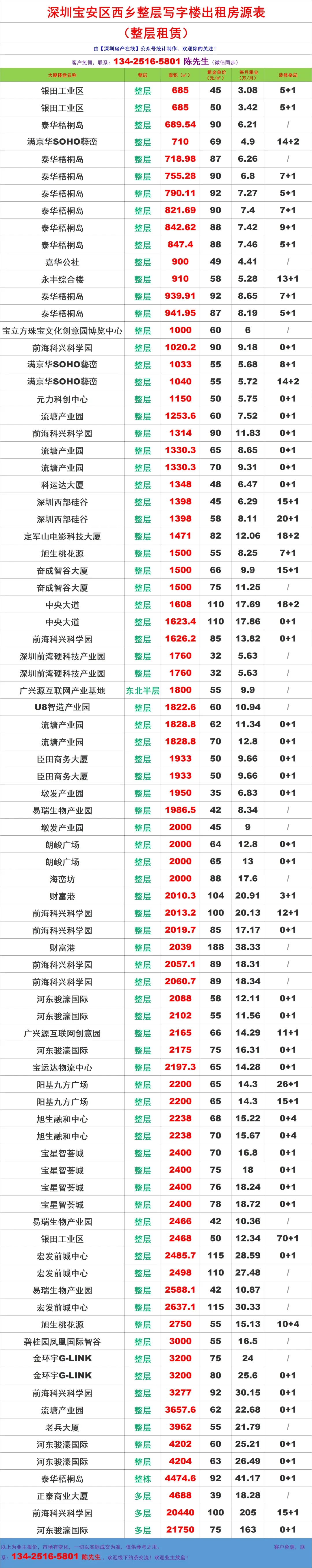 【深圳房产在线】陈先生:134-2516-5801 (微信同步)致力于提供全市写字楼招租/企业选址/代理招商/资产托管,全链条商务服务!
