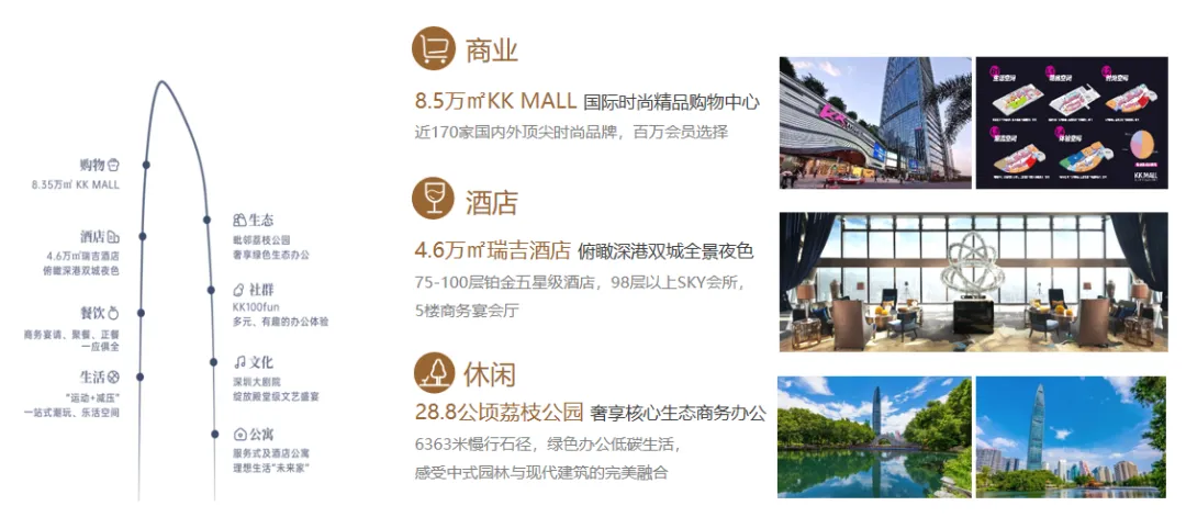 4.6万㎡瑞吉酒店俯瞰深港双城全景夜色75-100层铂金五星级酒店,98层以上SKY会所,5楼商务宴会厅