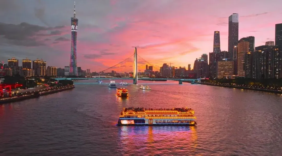 珠江夜游是体验广州“不夜城”魅力的经典方式,夜晚的珠江两岸华灯璀璨,乘船穿行于跨江大桥之下,晚风轻拂,尽览都市的繁华与灵动。