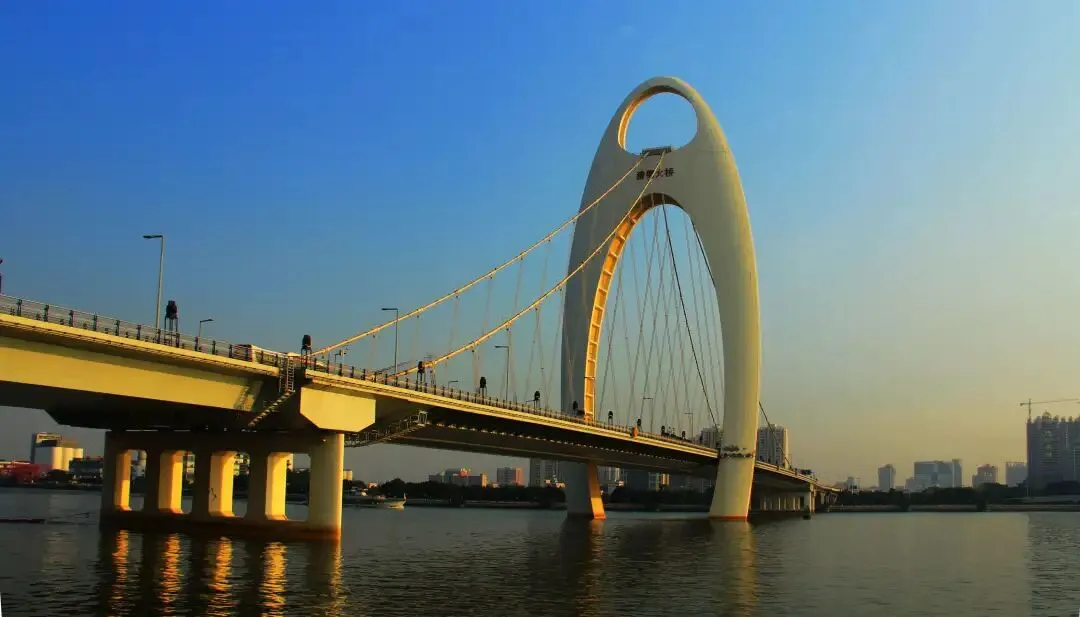 屹立于珠江上;桥塔两侧各有1.2厘米的开槽