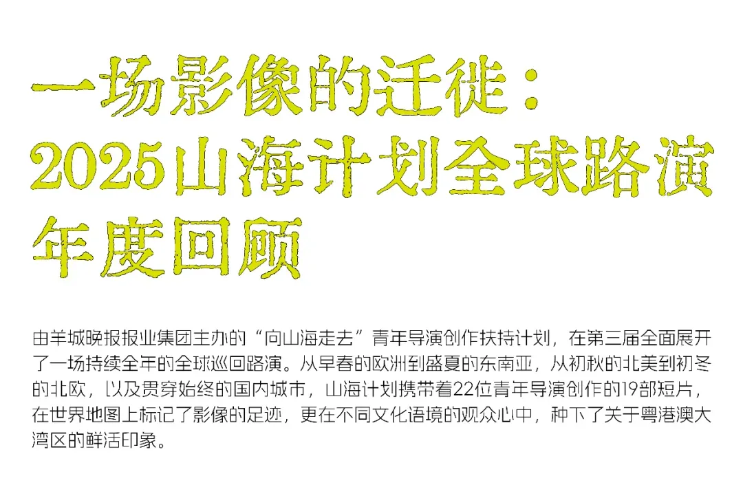 山海计划旗下的「山海观影团」持续支持艺术电影及青年导演创作,通过观影与交流的方式,为创作者搭建与观众对话的平台。
