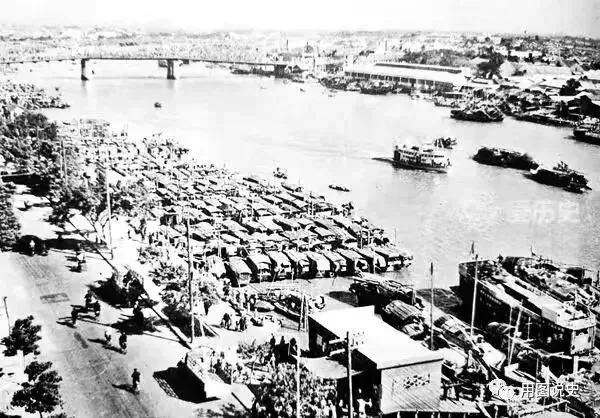 1.1952年,在珠江岸边停靠着许多的疍家木船,密密麻麻的停在岸边就如同今天停车场一样。