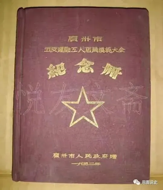 2.1952年,广州市人民政府赠送“广州市五反运动工人店员模范大会纪念册”。