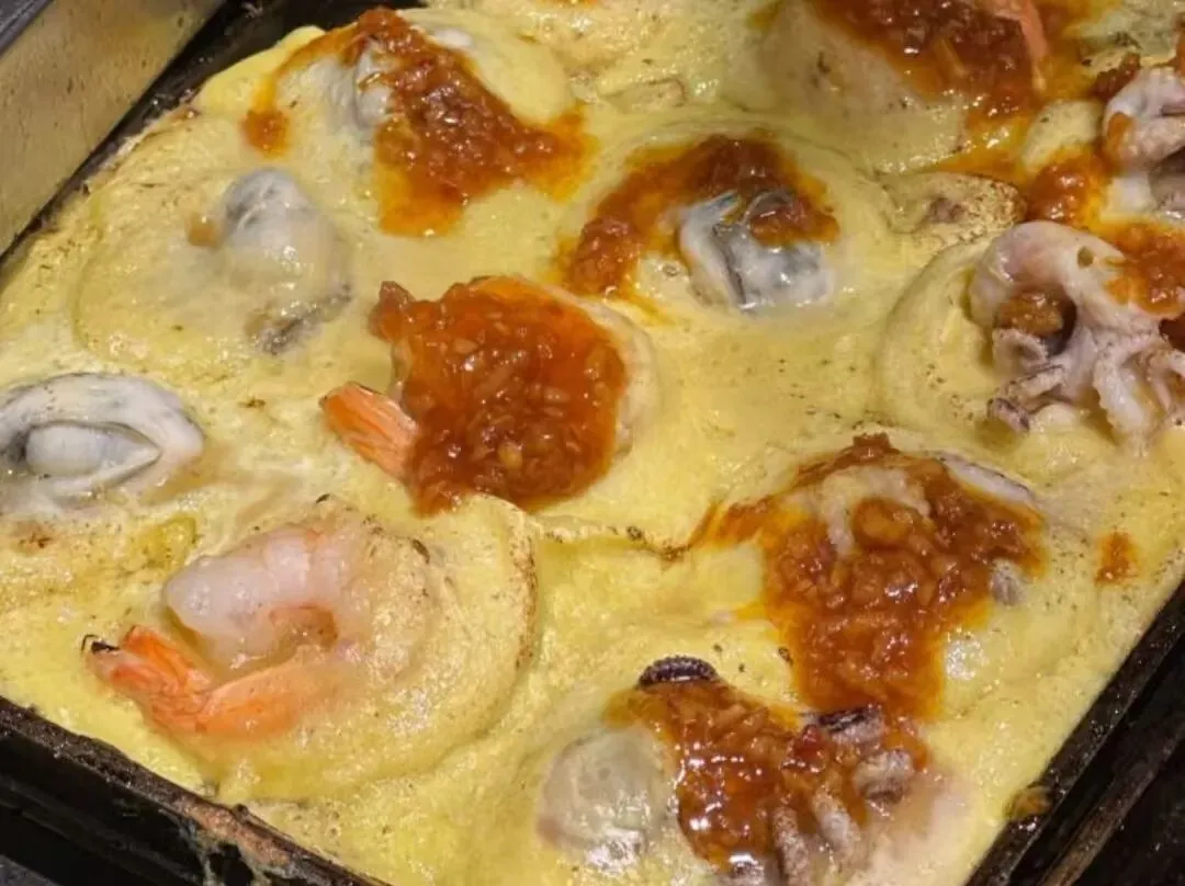 我们点了一份海鲜三拼蚝蛋烧,里面有生蚝、虾仁和八爪鱼,一份有六个。海鲜吃起来挺新鲜的,肉质弹牙而且没什么腥味,外层的蛋皮煎得外脆内嫩。趁热咬下去的时候,里面的汁水挺足的,这种现点现做的街头小吃确实很香。朋友是个芝士控,还额外加了一份芝士口味的,拉丝效果挺明显,奶香味很浓。去之前记得先在网上看看有没有券,比直接店里买要划算不少,能省下几块钱。口味可以自己选,有孜然、香辣或者蒜香,不过有些调料撒多了会稍微有一点点咸。这家店是没有堂食座位的,大家基本都是点完站在路边吃,或者边走边逛。赶上周末晚上的话,排队的人还挺多,大概要等个十分钟左右才能拿到。意外发现的街边店在体育西找小吃,无意中发现了这家蚝蛋烧,真的超级香,点了一份3拼(8个版)现做,需要等个五六分钟生蚝、八爪鱼、虾都很大只,调料也很香,可惜今天下雨,只能撑着伞现在有券可用,非常不错,已经吃了2次了途径天河南发现这家蚝蛋烧挺特别的,就团一份试试都是现烧的,跟鸡蛋仔做法差不多,海鲜食材都算还可以,有一只大虾,生蚝仔,章鱼,三种海鲜食材搭配鸡蛋一起烤,味道还不错哒,跟蚝仔烙有点相似,挺特别的,哈哈哈,经过想试试还可以哒路过看到生意很好,再次路过的时候人少了,就买了一份小份,一共6个,虾,八抓鱼和鲍鱼一样:2个。虾,鲍鱼,八抓鱼都是完整的一个,20多块:钱,感觉一份性价比还不错。加了辣椒,适合我的