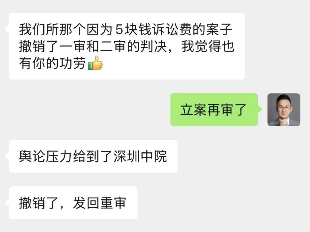 2025年12月30日,深圳市中级人民法院裁定重审2024年震惊全国律师界的“深圳律师因迟交5元诉讼费,被判决赔偿劳动者销售业绩提成奖+经济补偿金147万”案。