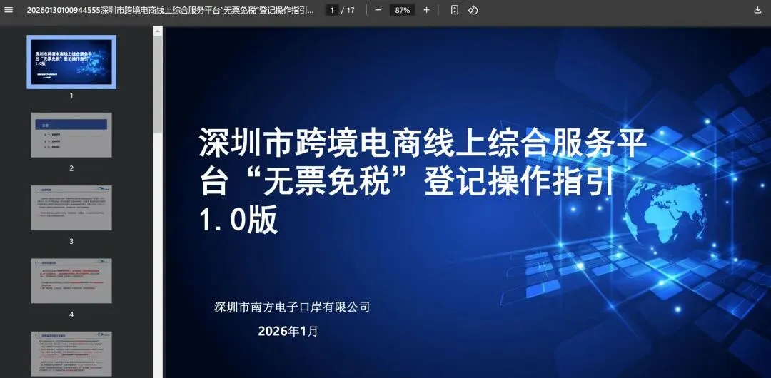 下面这份是深圳市跨境电商线上综合服务平台对最新的无票免税政策的解读资料,属于官方资料。