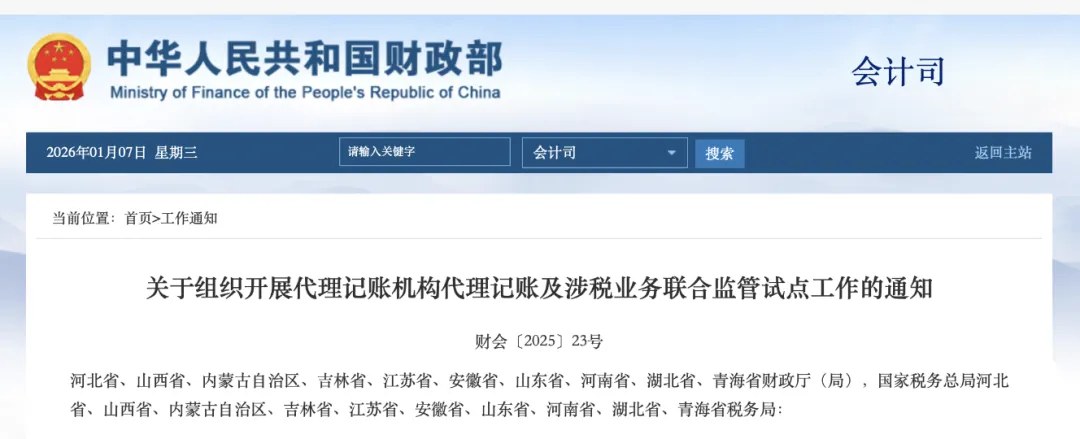 10月17日,财政部和国家税务总局联手发文,搞起了代理记账及涉税业务联合监管试点。这场自上而下的监管风暴,2026年1月就正式在河北、江苏等10个省份铺开,目标超明确——精准打击行业里的那些歪门邪道。