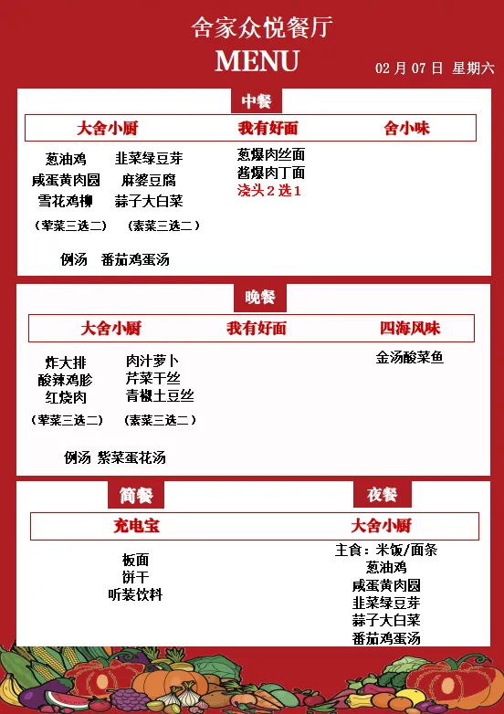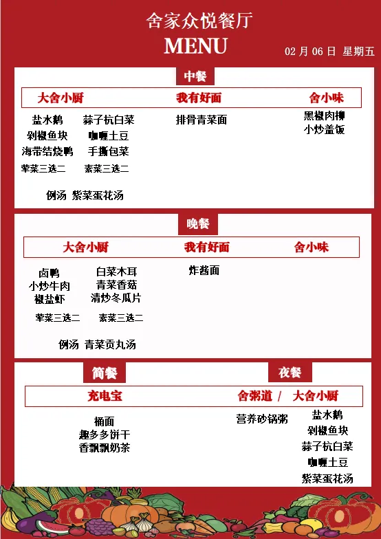 >舍弗勒广州路餐厅 每日菜单(02月02日-02月08日)
