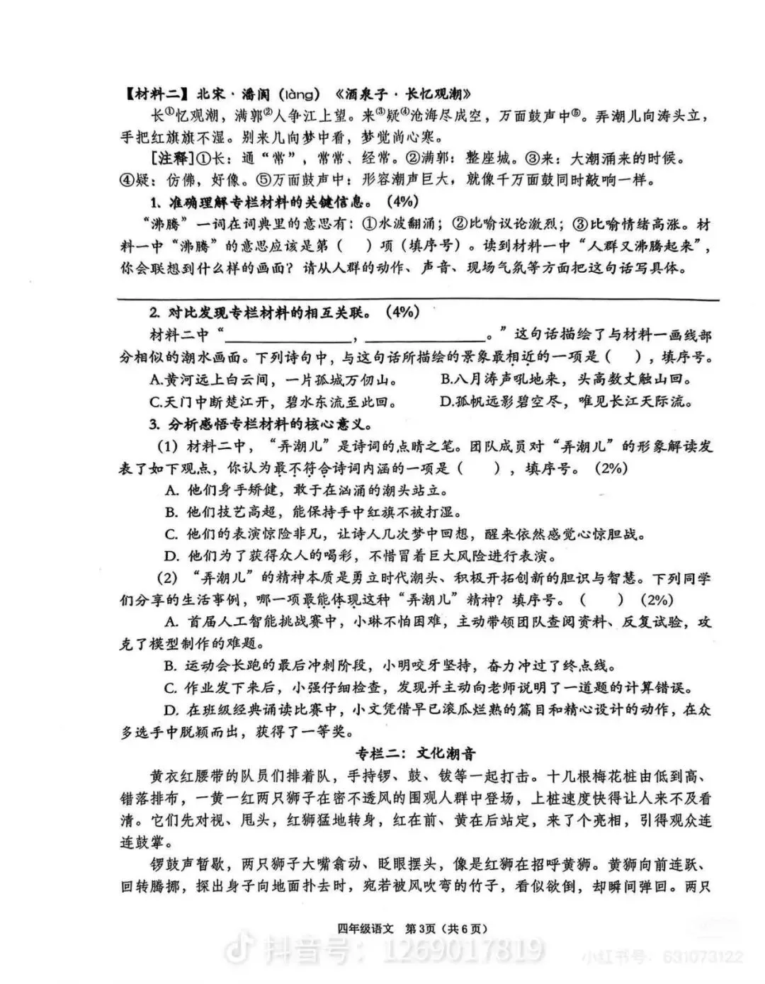 这几天一直刷到深圳市南山区2025-2026学年第一学期四年级语文期末试卷的报道,这份试卷一经曝光,便引发了不同观点的激烈碰撞: