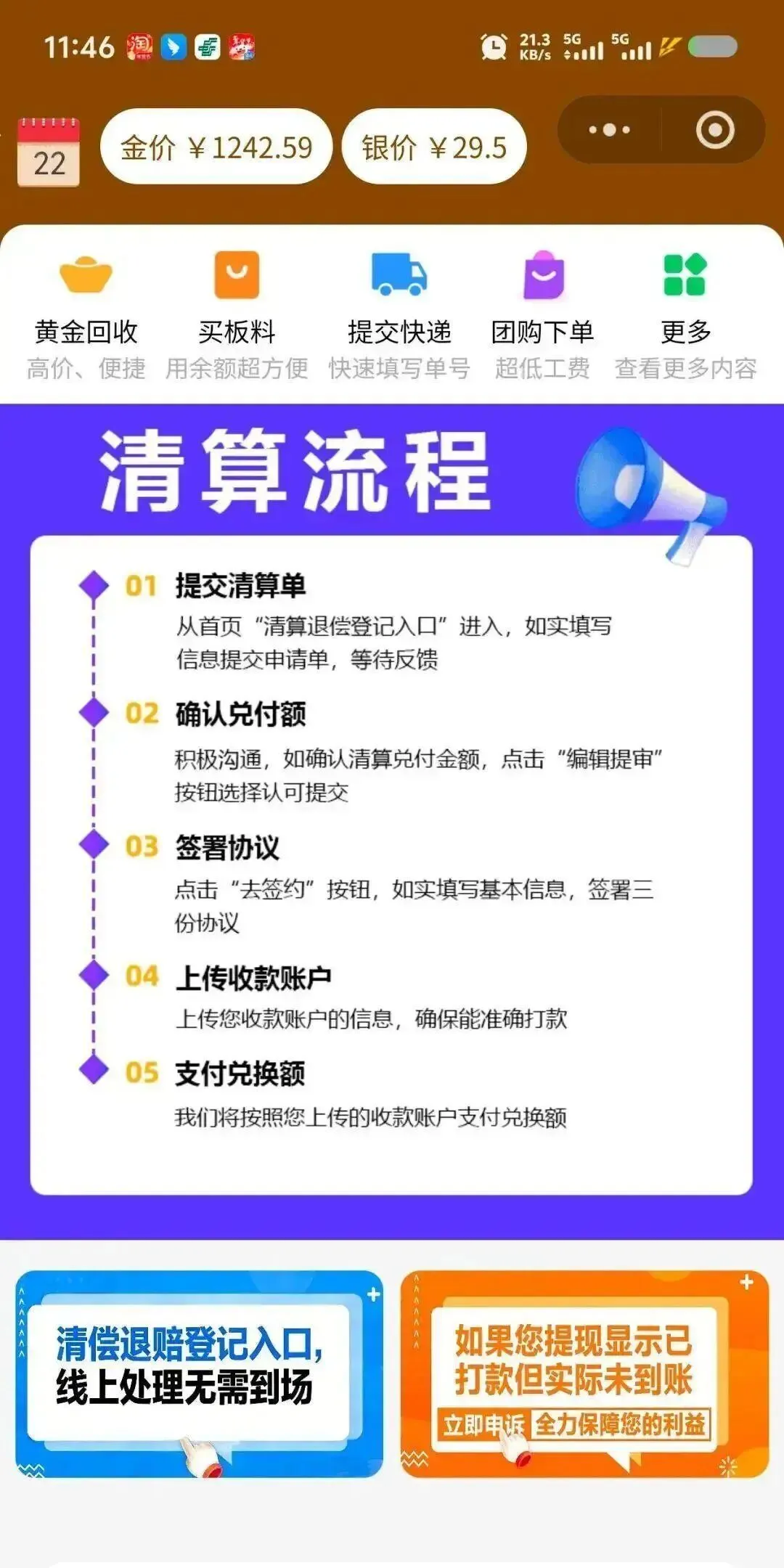 搅动市场神经的不只是黄金自身的波动,更有背后那根看不见的“金镰刀”。深圳水贝黄金珠宝市场,是全国最大的黄金集散地,号称克重精准、价格透明,却频频爆出黄金交易平台暴雷。过去十余年,“杰我睿”这样的平台在市场上活跃,创始人以专家形象出现在各类社交媒体,还有独立交易APP助推其业务。平台宣称创新的“预定价”“约价”等术语,不过是包装巧妙的高杠杆投资陷阱。设定少量定金就能参与高额黄金交易的游戏,本质便是私盘期货,把风险无限放大。这种机制绕过监管红线,仅凭平台自行解释交易规则,甚至保证金都能用积分延期支付,曾一度杠杆高达40倍,远高于上海黄金交易所7倍的杠杆标准。