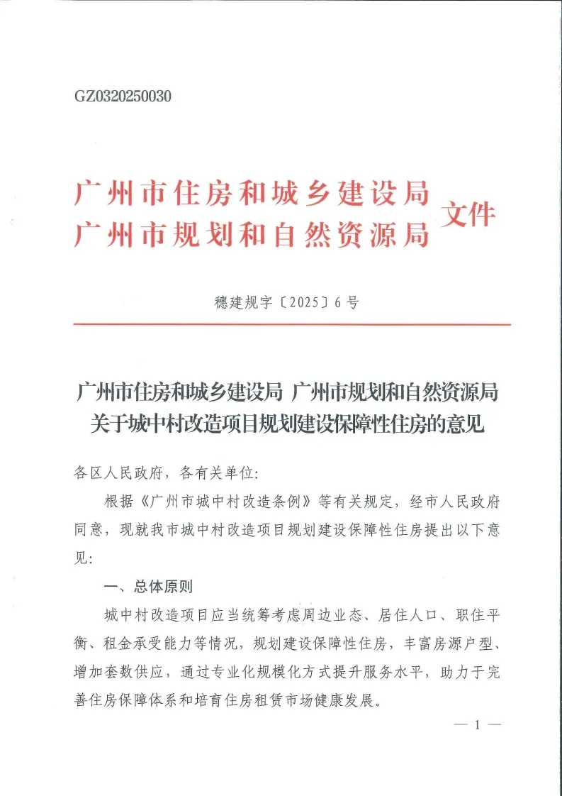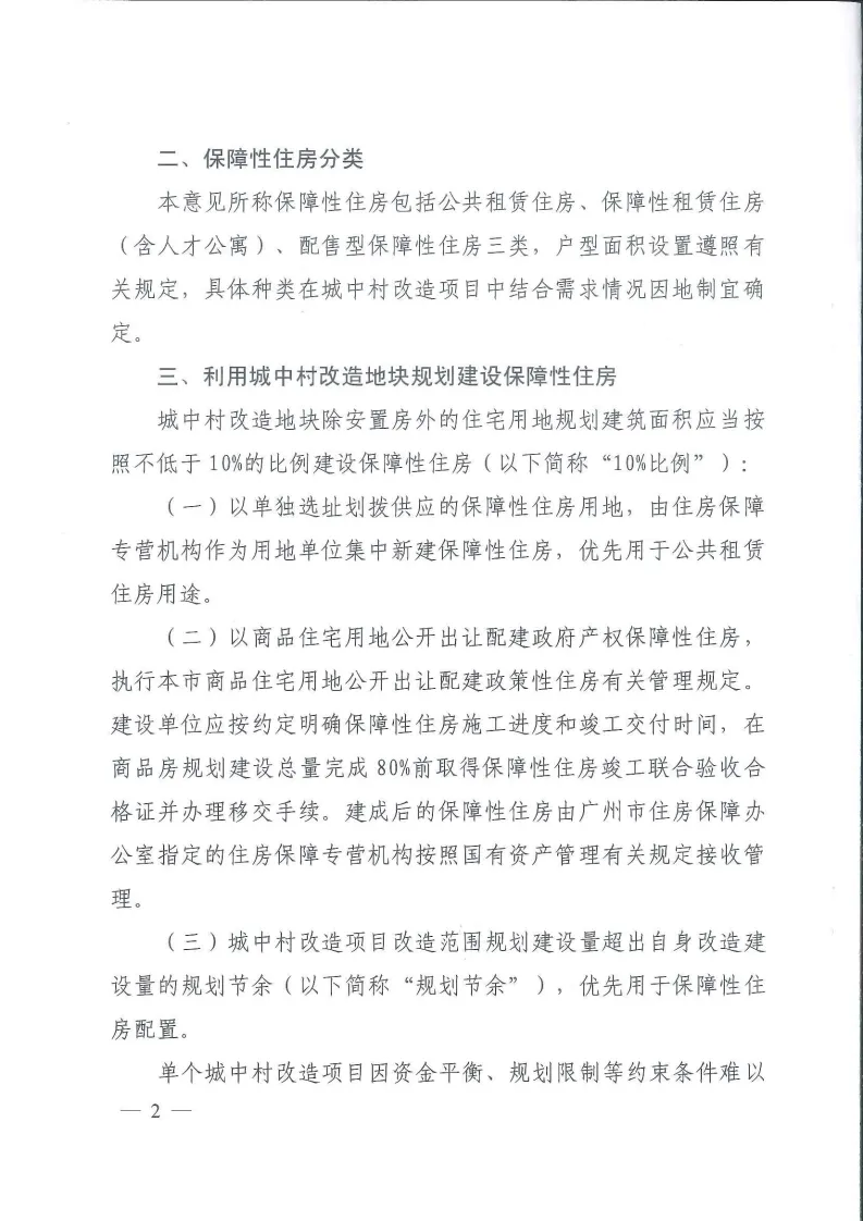 广州市住建局、规自局《关于城中村改造项目规划建设保障性住房的意见》