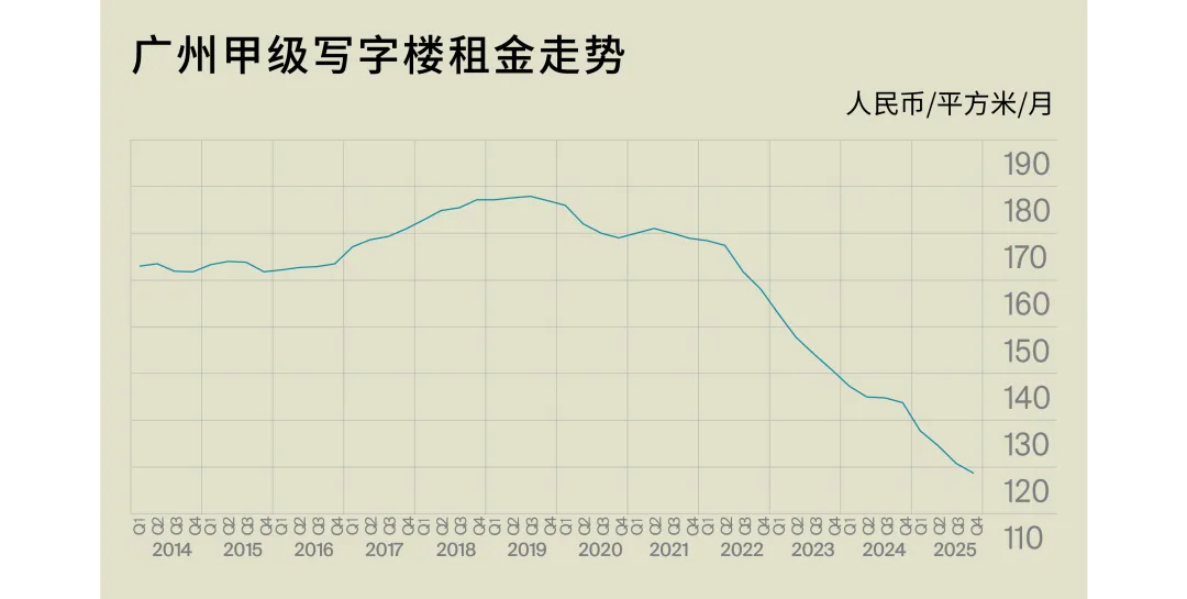 “展望2026年,广州甲级写字楼预计仍有超过140万平方米新增供应入市;即便部分项目可能转为销售或以自用为主,整体增量压力依然不轻。在市场尚处于“先稳住、再修复”的阶段,租金下行的惯性短期难以彻底扭转,价格竞争预计仍会持续,但其表现方式更可能从“全面降价”转向“更精细的定向让利”——通过锁定重点行业与关键客户、以免租/装修/灵活租期等方式换取签约与入住。”
