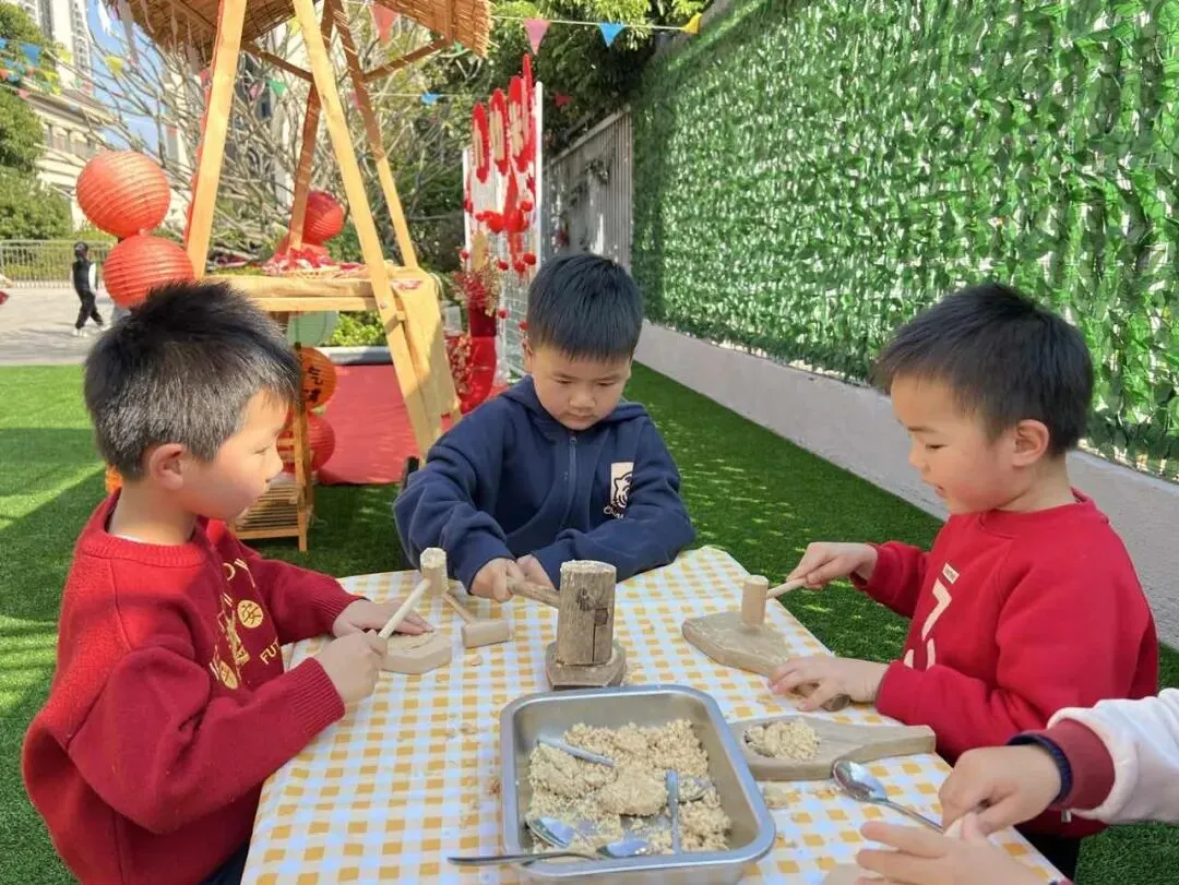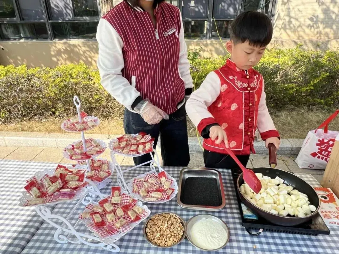 打米饼、冰糖葫芦、牛轧糖,甜香四溢,孩子们体验制作,收获满满的成就感。