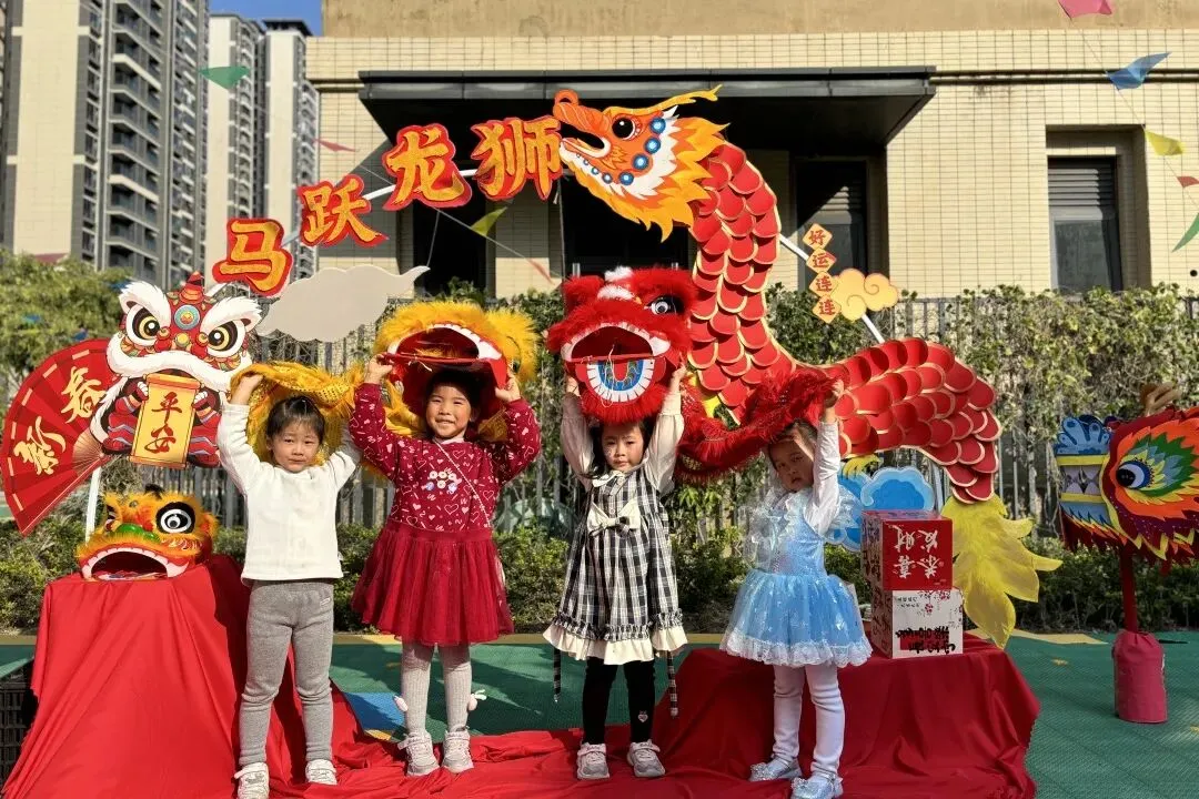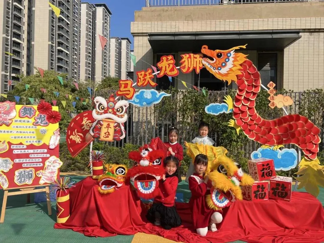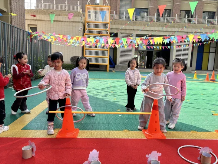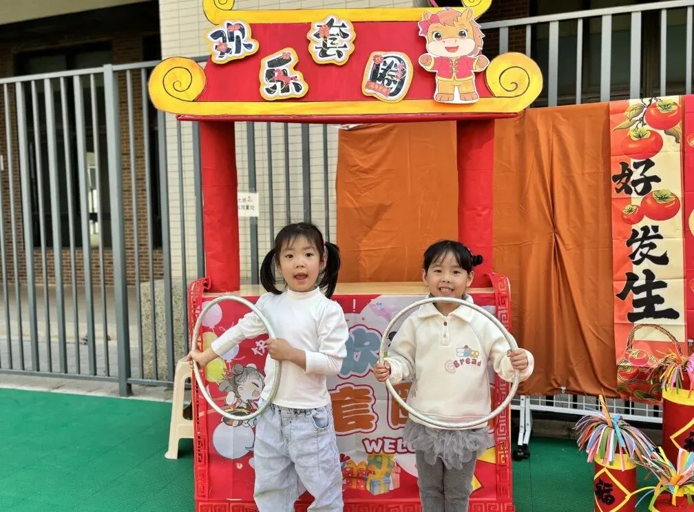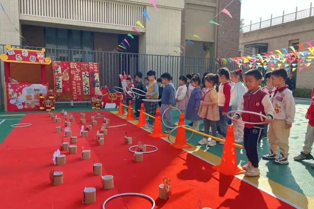 欢乐套圈笑声连连,舞龙舞狮热闹非凡,孩子们在协作中收获快乐与友谊。