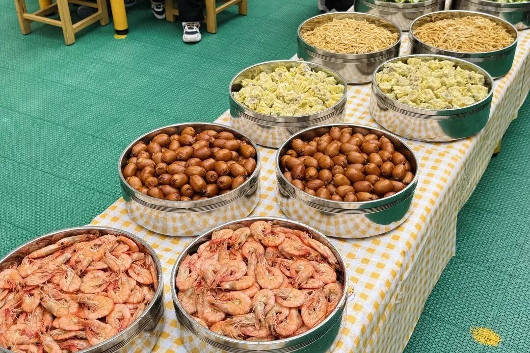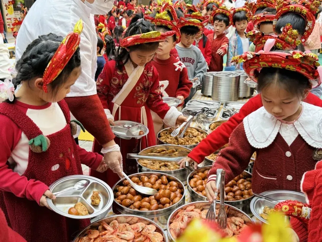 餐台上,琳琅满目的美食兼具营养与寓意,满含对小朋友们的新年祝福。
