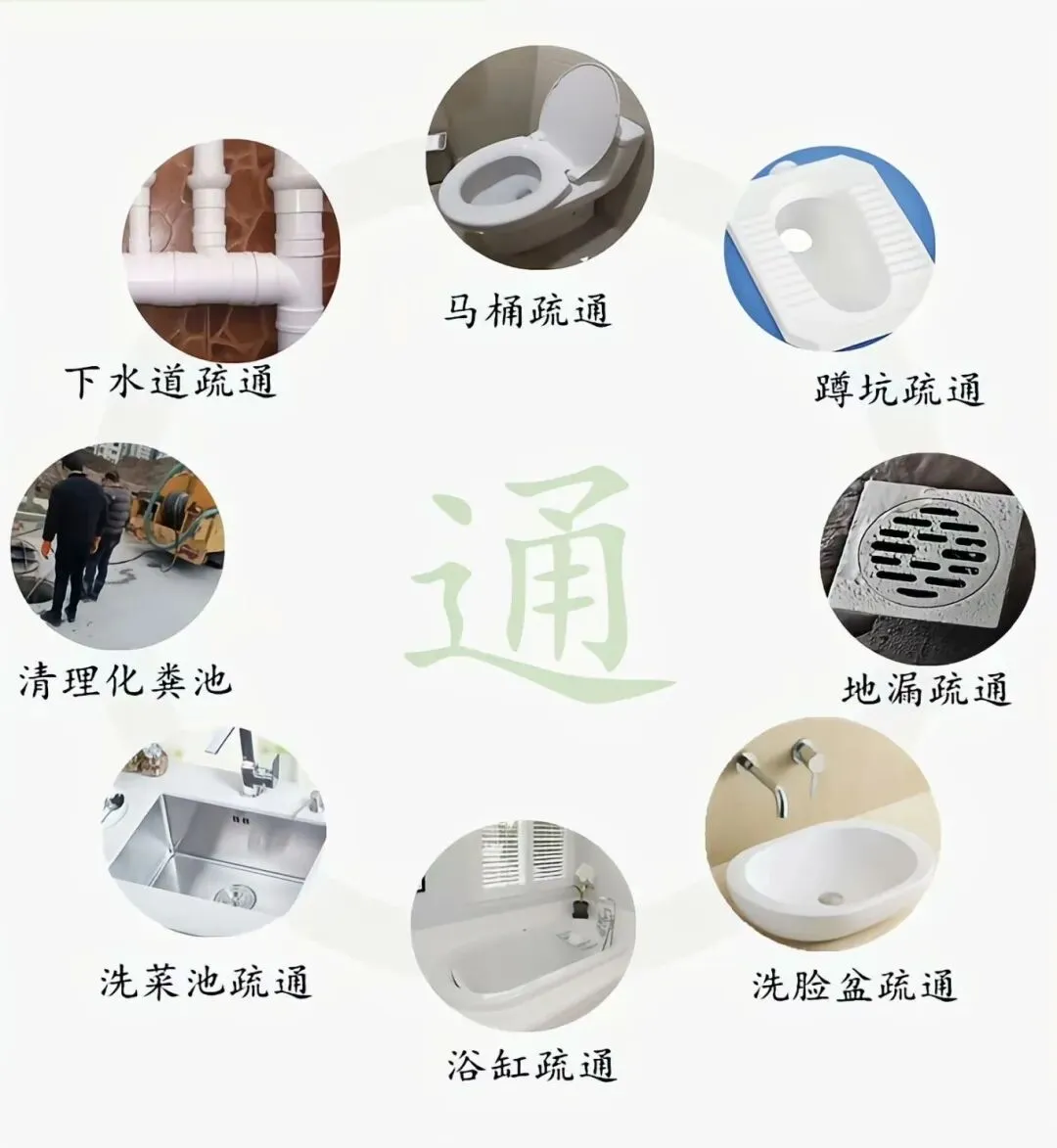 🚽 管道疏通:使用家用疏通机、大型疏通机等设备,专业疏通各类疑难下水道、卫生间、地漏、浴缸、菜池、阴沟、马桶、蹲坑等。