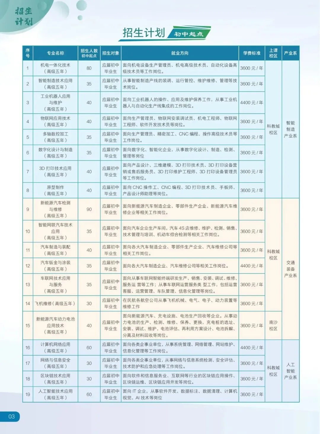 开设 机电一体化、智能制造、新能源汽车、数字服务、人工智能 等38个专业,对接粤港澳大湾区重点产业