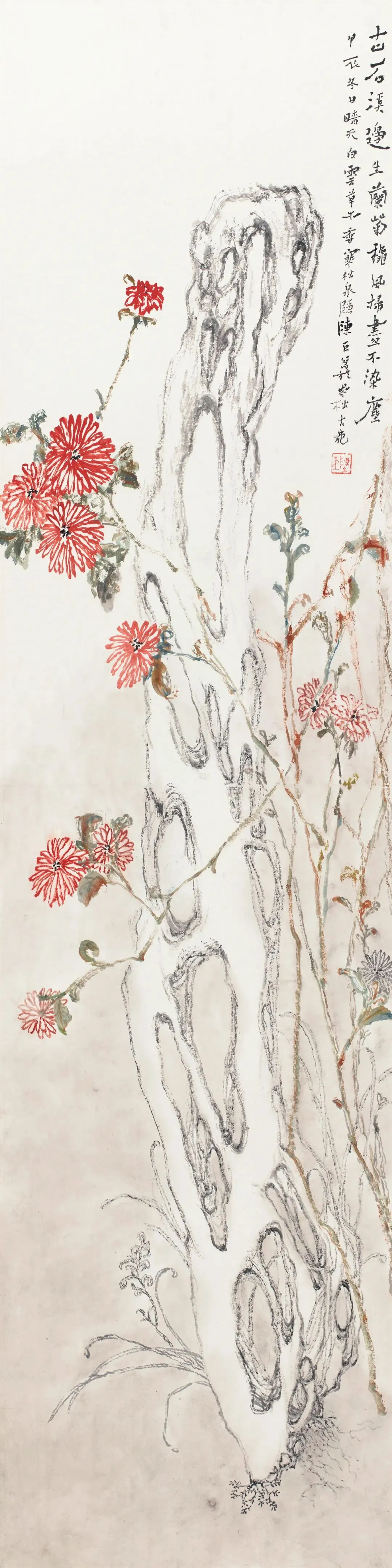 《古石溪边》138x65㎝ / 设色纸本 / 2023