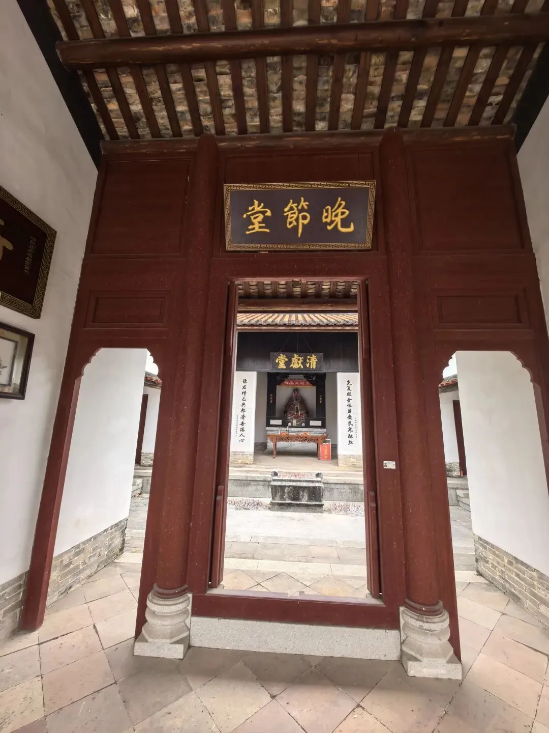 信步走入崔太师祠,“晚节堂”三字匾额赫然入目,心中蓦然一惊。我自身也是退休之人,常怀“不系之舟,无拘无束”之想,偶有放任之念。然而“晚节”二字,如清钟叩响。何谓“节”?细想来,不就是“行己有耻”的贯穿与坚守么?节操非一时之兴,乃是终身之事。崔与之晚年七辞参政、十三疏拒相位,非为虚名,恰是对心中道义之“节”的终极持守。这“晚节”之教,于我这闲散访客,竟成了一剂清醒的良药。