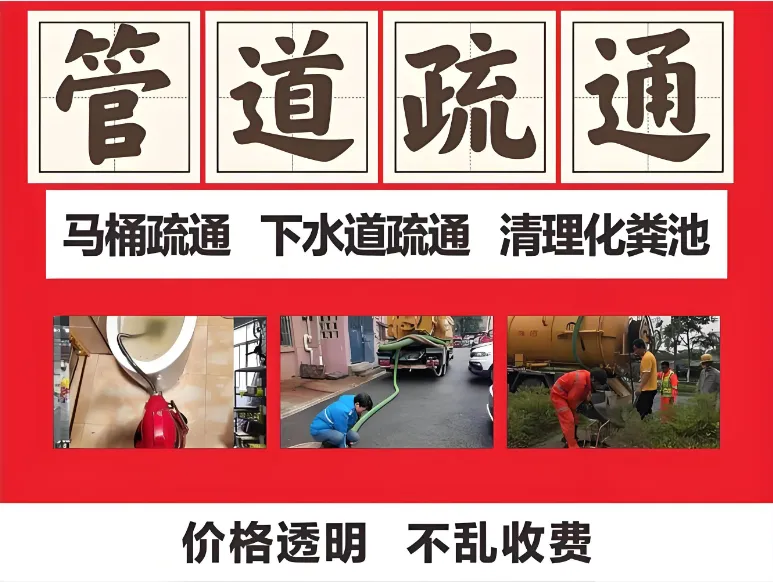 管道疏通使用家用及大型专业疏通机,处理各类疑难堵塞,专业疏通卫生间、地漏、浴缸、菜池、阴沟、马桶、蹲坑等。管道清洗配备大、中、小型高压清洗车,彻底清洗各类上下水管道及疑难污水管道,包括居民楼所有分管、立管、主管管线。清理化粪池备有大小吸污车,提供抽化粪池、污水池、隔油池、抽泥浆、抽沙井等专业服务。市政管道服务市政管道清淤、非开挖修复、河道清淤、窨井沟渠清理、管道池塘河涌淤泥清理。清掏服务专业清理化粪池、隔油池、马葫芦及下水井内的油污杂物。快速疏通专门处理因装修掉落水泥、沙子或毛发等造成的下水道堵塞。