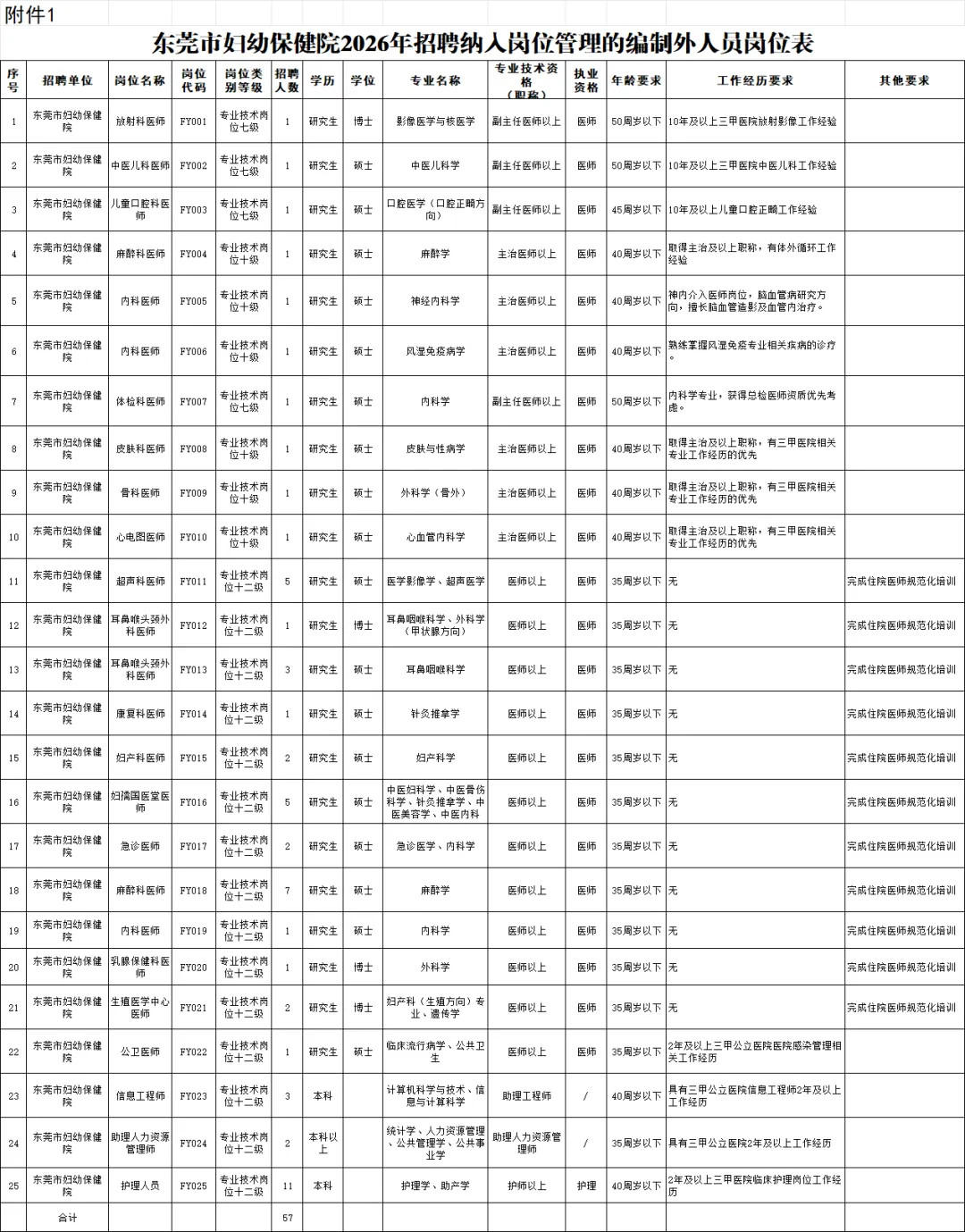 附件1:东莞市妇幼保健院2026年招聘纳入岗位管理的编制外人员岗位表.xlsx