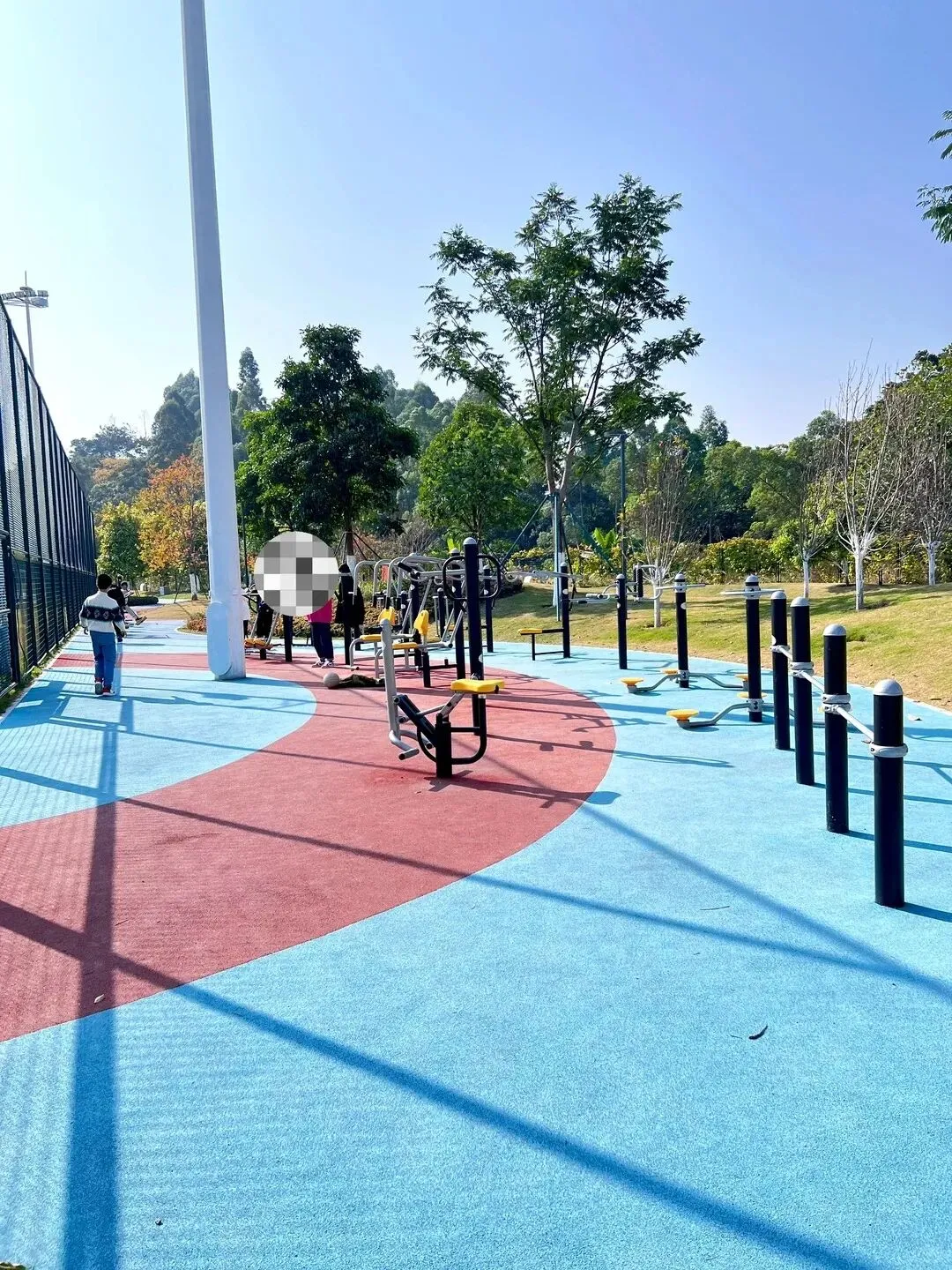 谁说遛娃就只能站在旁边等?这个公园直接给宝妈留了“专属空间”!儿童区旁边就是智能健身区,健身车、划船器、深蹲训练器应有尽有,扫码还能看自己的卡路里消耗,太适合想偷偷运动的宝妈了。